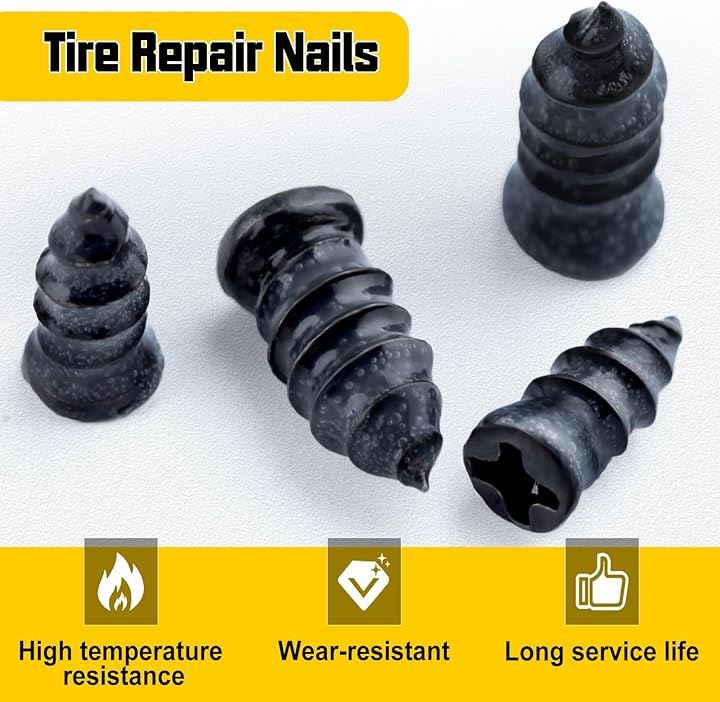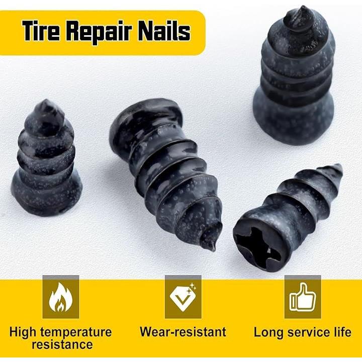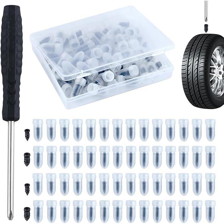 タイヤ補修用ゴム釘 2サイズ 60個入り ドライバー付き タイヤパンク釘 チューブレスラバーネイル 耐熱性 クイックパッチ パンク修理キット 車 自転車 バイク オートバイ トラック用 真空タイヤ補修ネジ高速修理キット 独立包装持ち運びやすい 収納ボックス付き