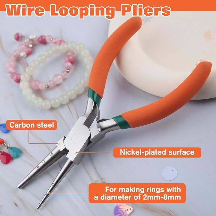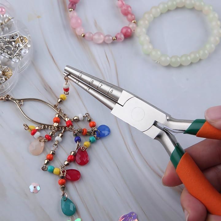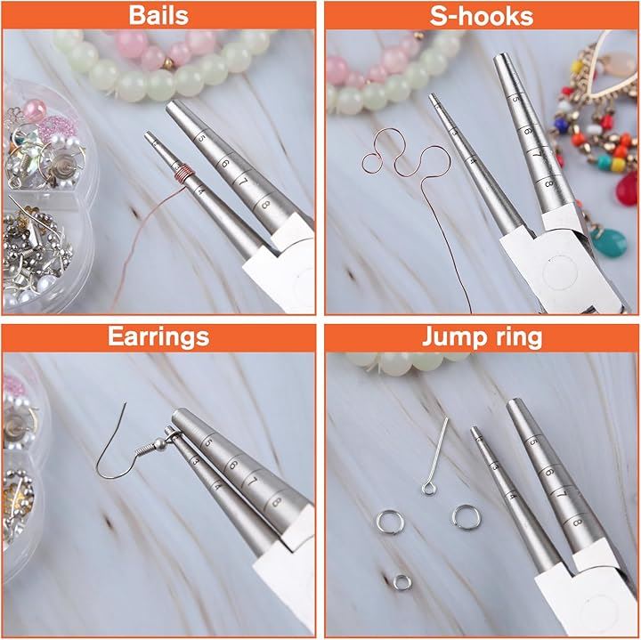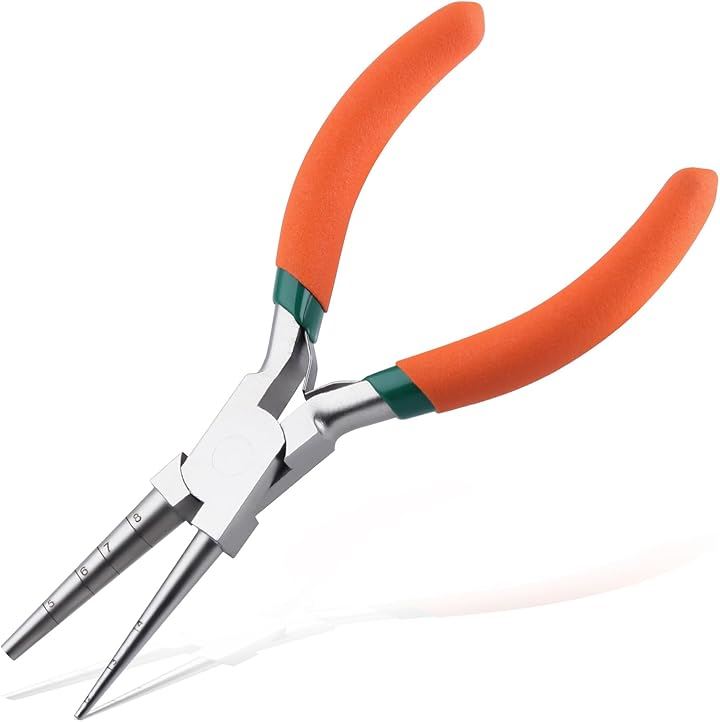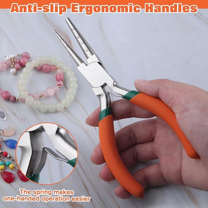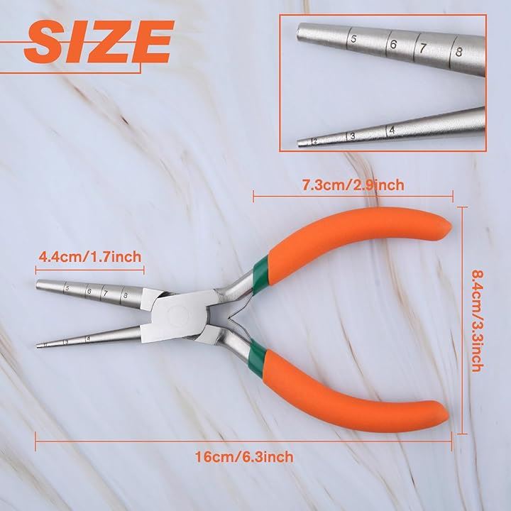 6-in-1 ワイヤーループペンチ ワイヤーループプライヤー ピン曲げペンチ ピン曲げヤットコ 丸ペンチ 丸ヤットコ 目盛り 2mm-8mm 6リング型 丸やっとこ 先丸ペンチ ラウンドワイヤー 炭素鋼製 バネ付