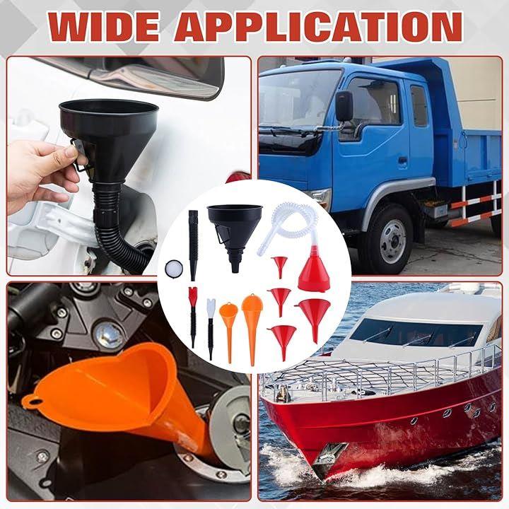 互換品 オイルじょうご 給油漏斗 オイル交換 じょうごセット 10個入り オイルファンネル 給油ロング漏斗 長口漏斗 広口 ホース 細い ファンネル用防塵ネット付き プラスチック製 給油ファンネル 伸縮式長さ調節可能 ソフトパイプ付