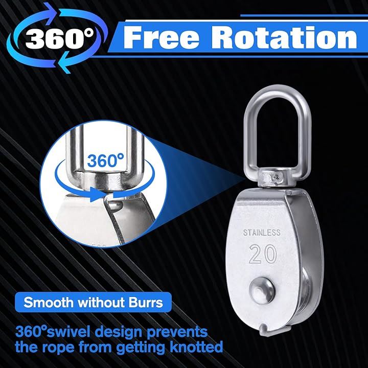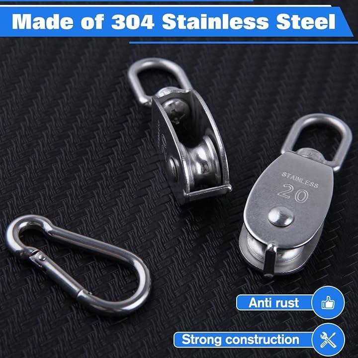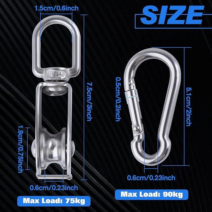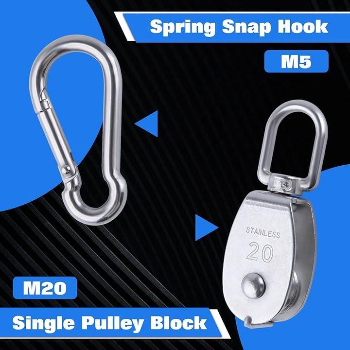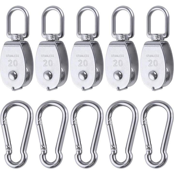 互換品 M20 滑車 小型 シングルプーリーブロック カラビナ付き 5本セット 滑車ローププーリー スイベル 式 豆ブロック 360度回転 クレーンプーリーブロック ロープ滑車 建設工事 室内 屋外 プーリークライミング ホームアクセサリー 防錆 耐荷重75kg