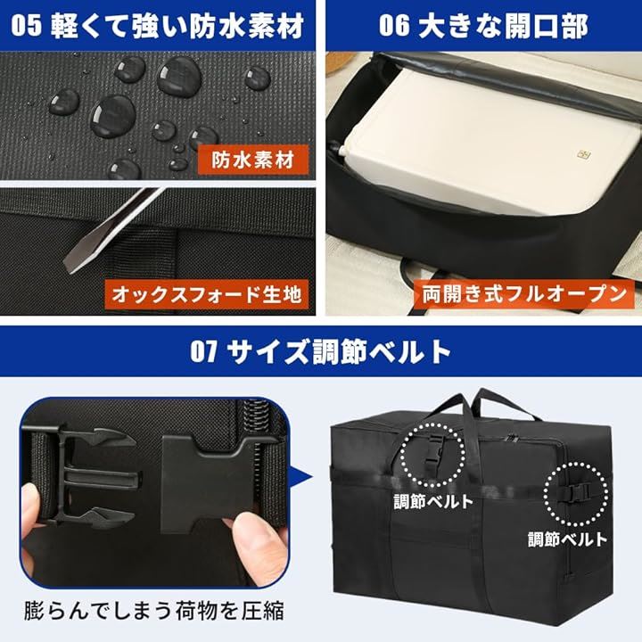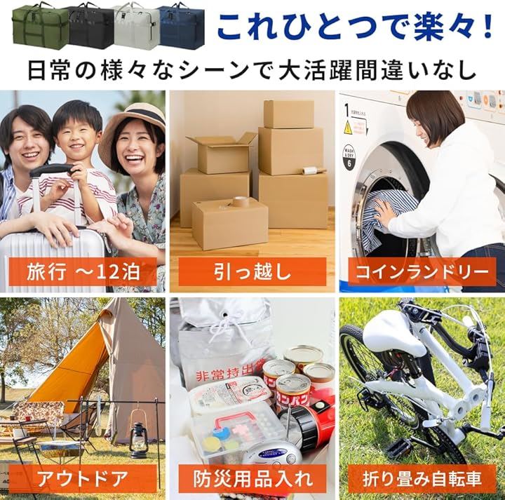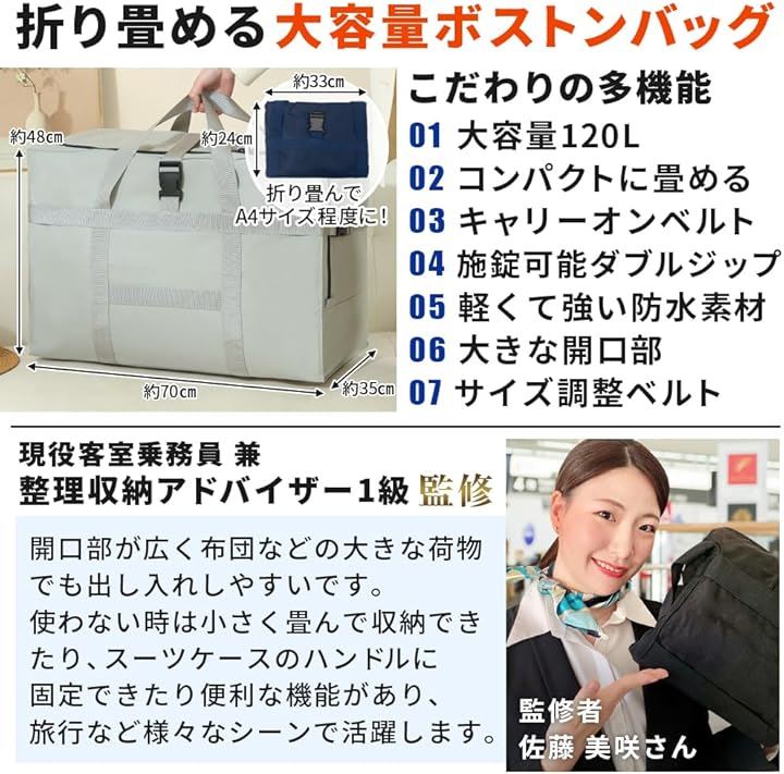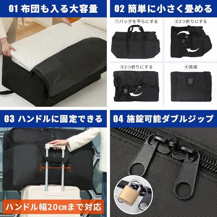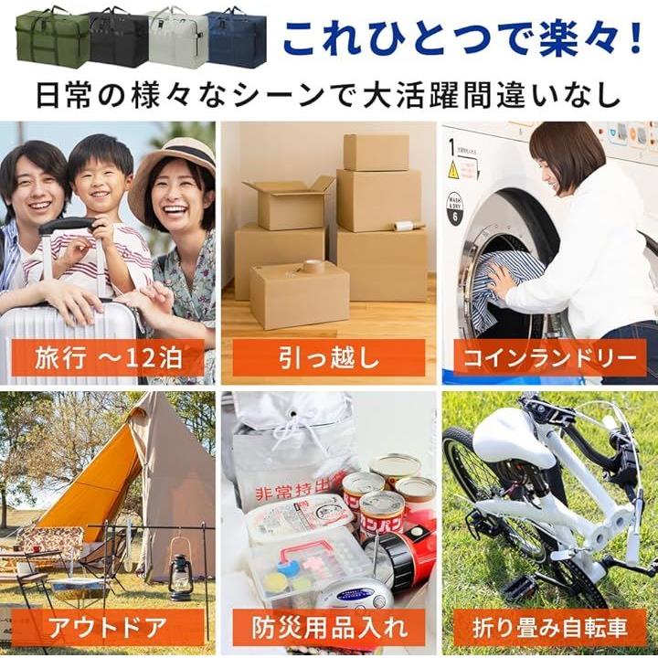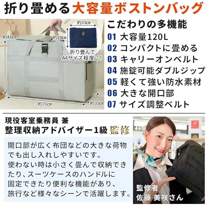 ボストンバッグ 大容量 120L 旅行 折りたたみ 撥水 キャリーオン 施錠可能 ダブルファスナー サイズ調整ベルト付