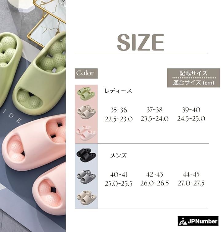 [JP Number] 健康サンダル スリッパ 室内 足ツボ 風呂掃除 ベランダ プール ビーチサンダル 刺激マイルド |