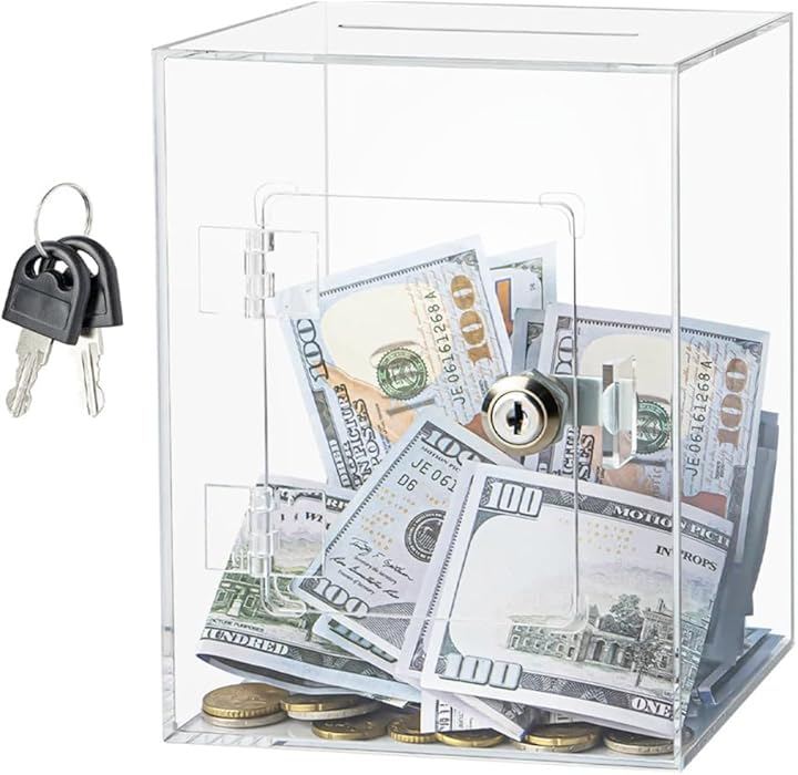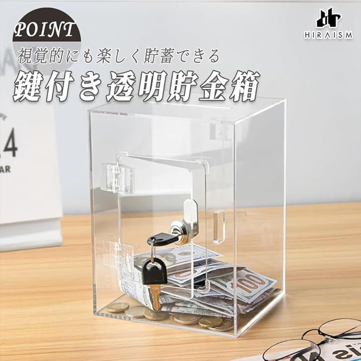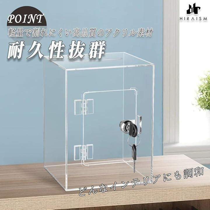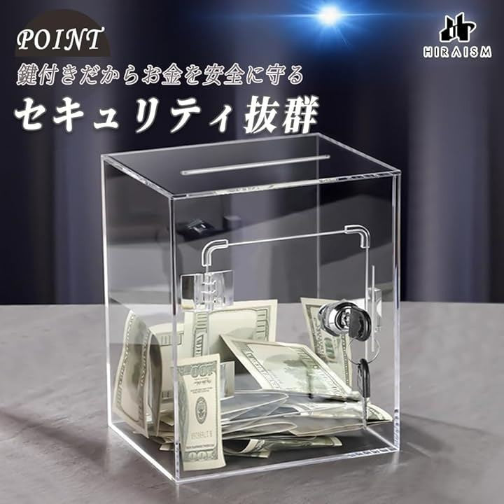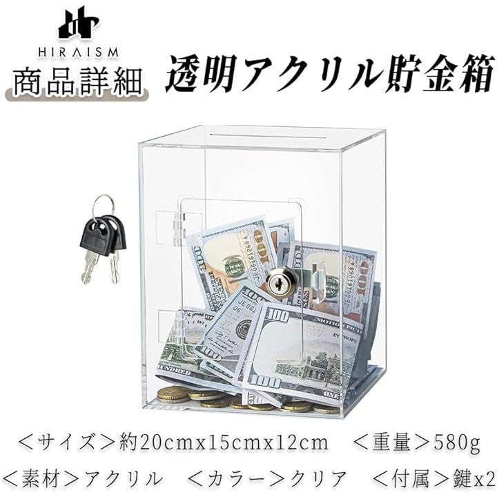 貯金箱 投票箱 募金箱 透明アクリル 大容量 鍵付き