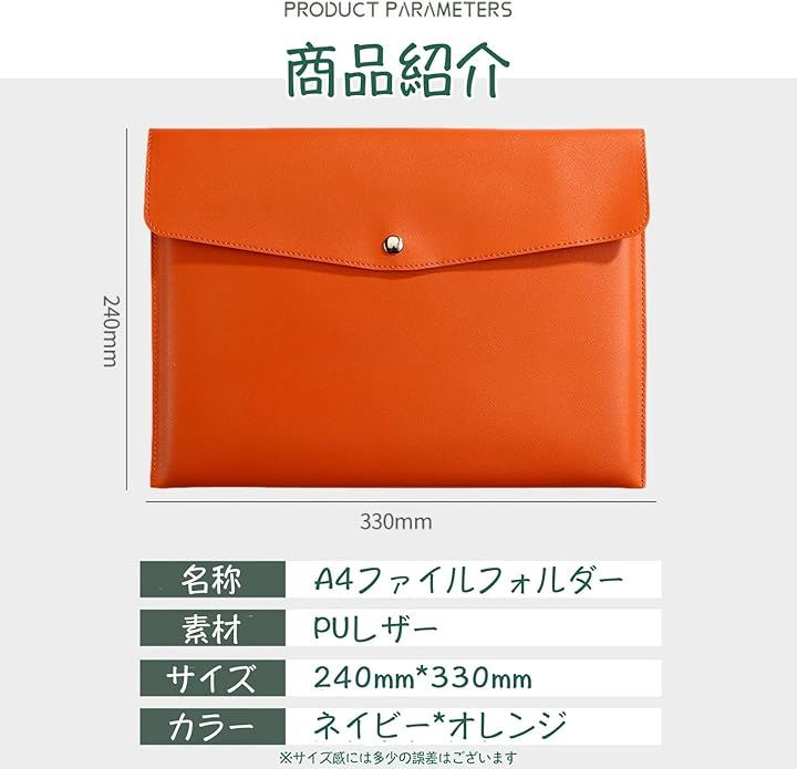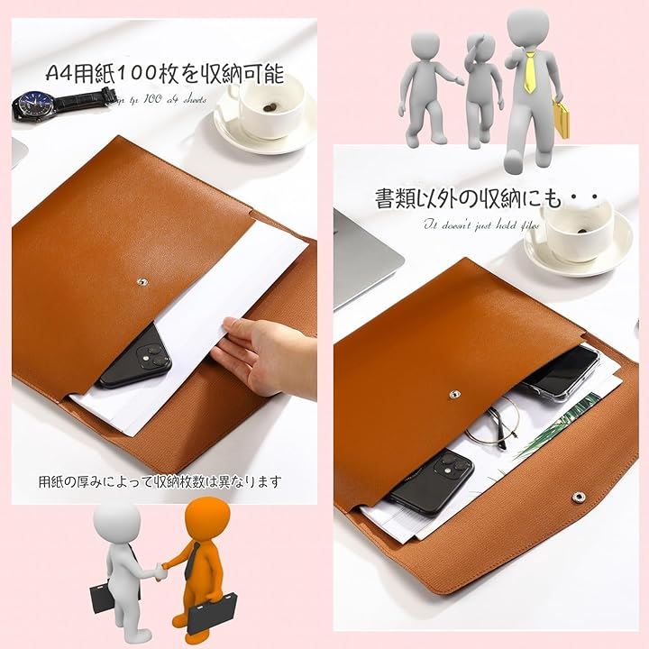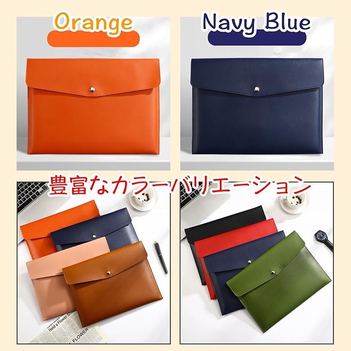 ファイルフォルダー PUレザー 横型 マチなし A4レターサイズ ファイルバッグ 書類ケース ドキュメントケース 資料 収納 オフィス ビジネス 防水