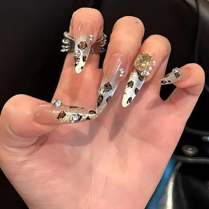 ネイルチップ ヒョウ柄 ギャル 子供 付け爪 長い 地雷系 可愛い キラキラ シール グッズ