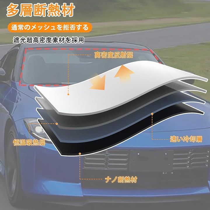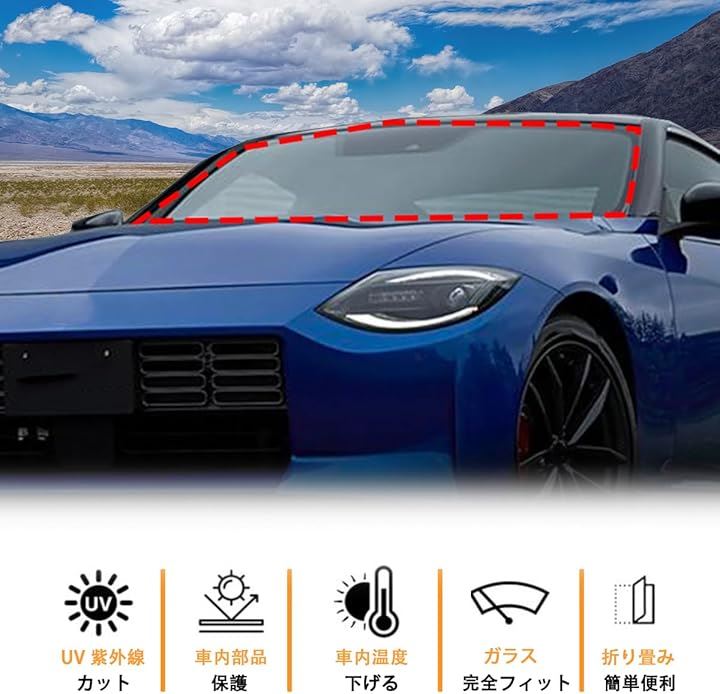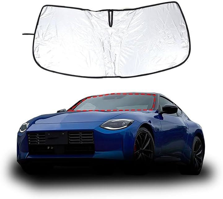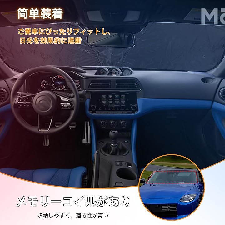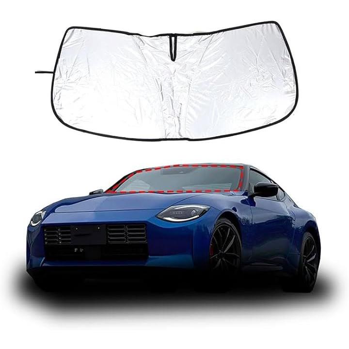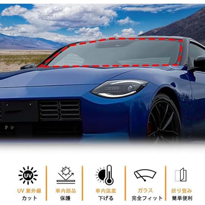 互換品 日産 フェアレディZ RZ34 2022~2025に適用 サンシェード フロントガラス 遮光フロントシェード フロントガラスサンシェード 車用パラソル 日よけ UVカット 日焼け対策 紫外線カット 収納ポーチ付き 車中泊 車内保護 取付簡単
