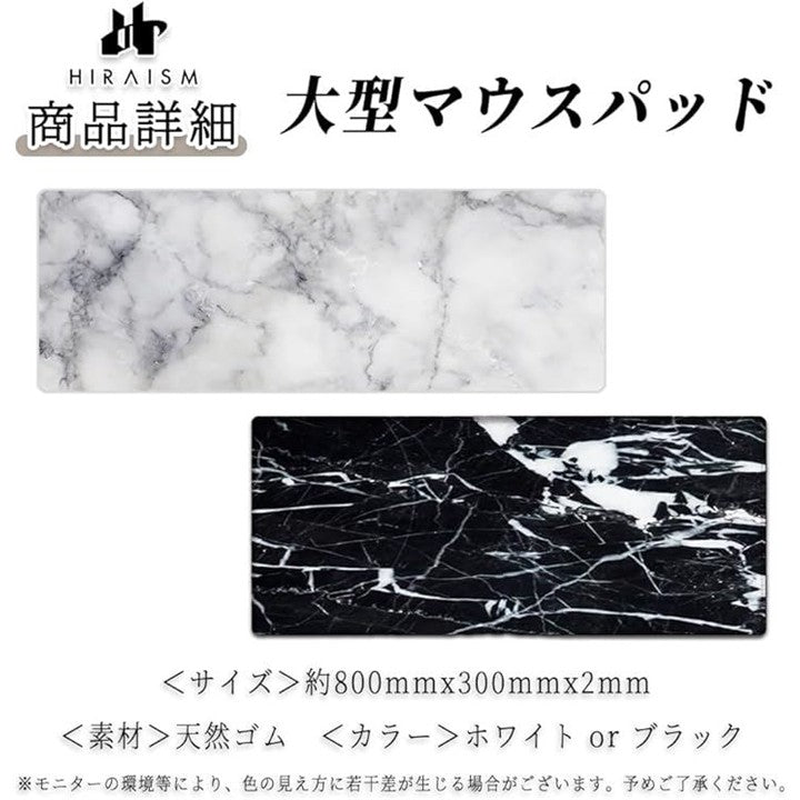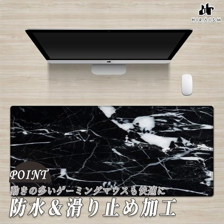 マウスパッド ゲーミング 大型サイズ 薄型 大理石柄 光学式マウス適用 800x300x2mm