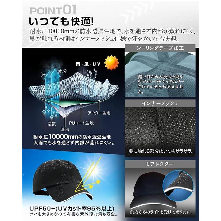 TeamOneDay 防水/UVカット レインキャップ 帽子 男女兼用 深め スポーツ ランニング 釣り 登山 アウトドア ギフト