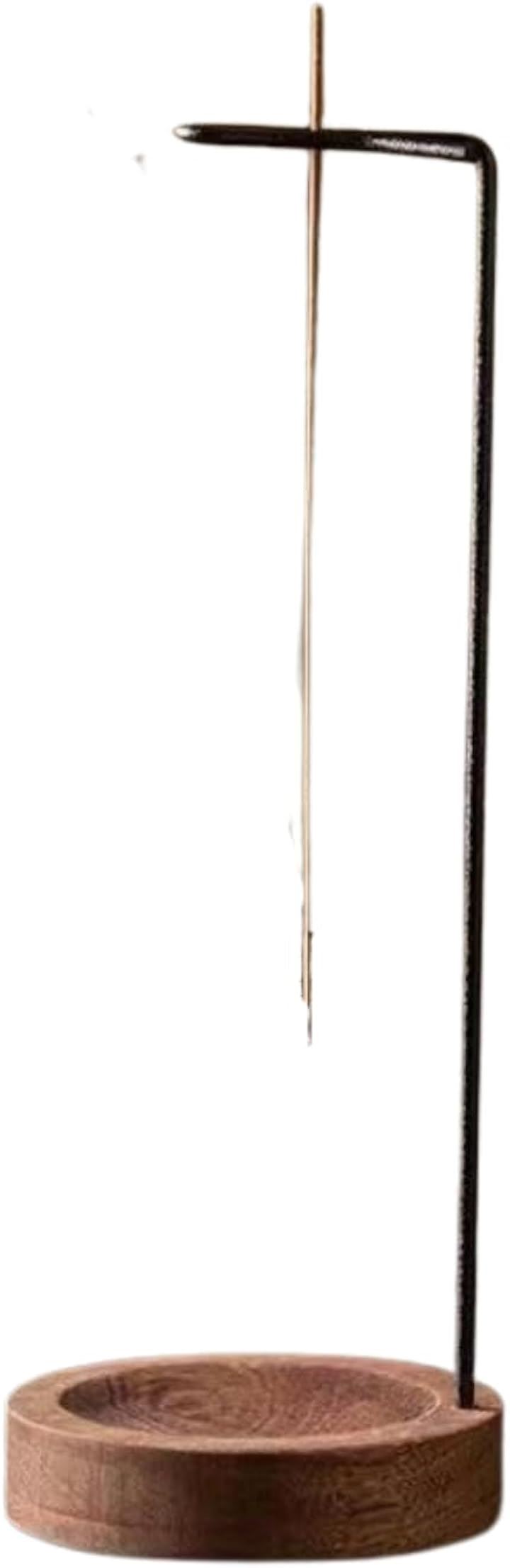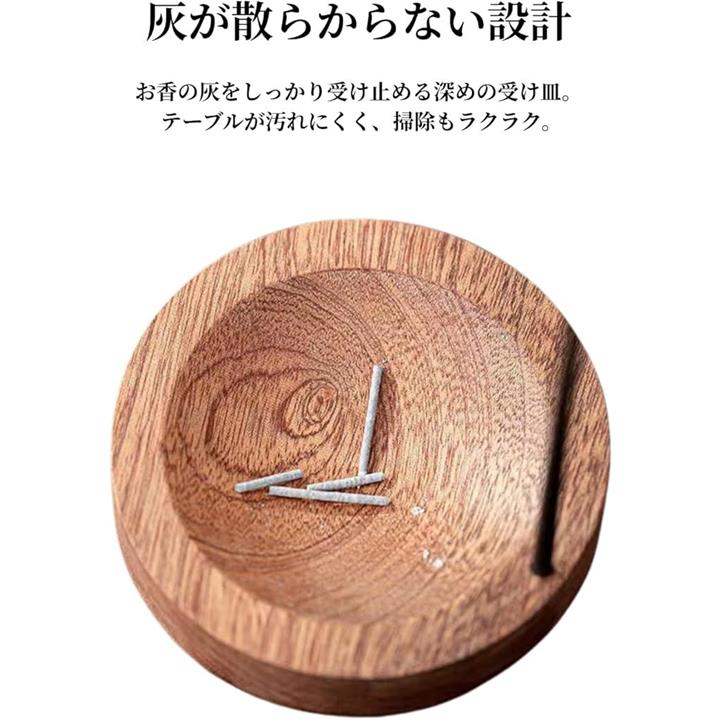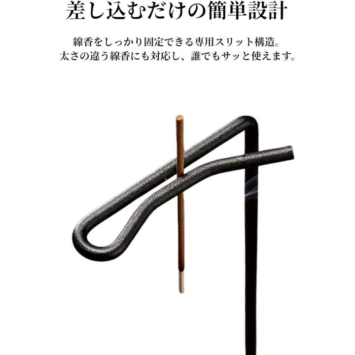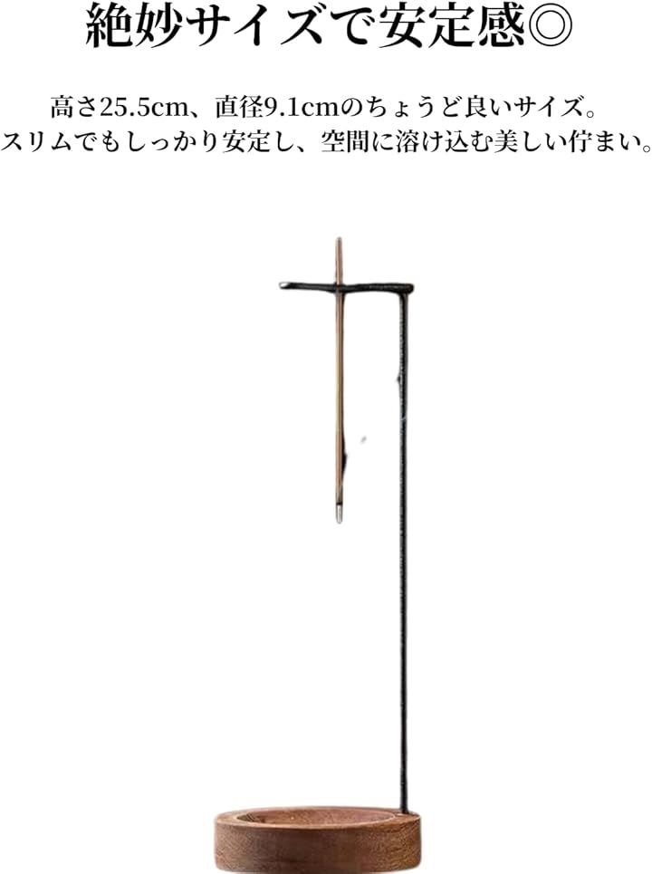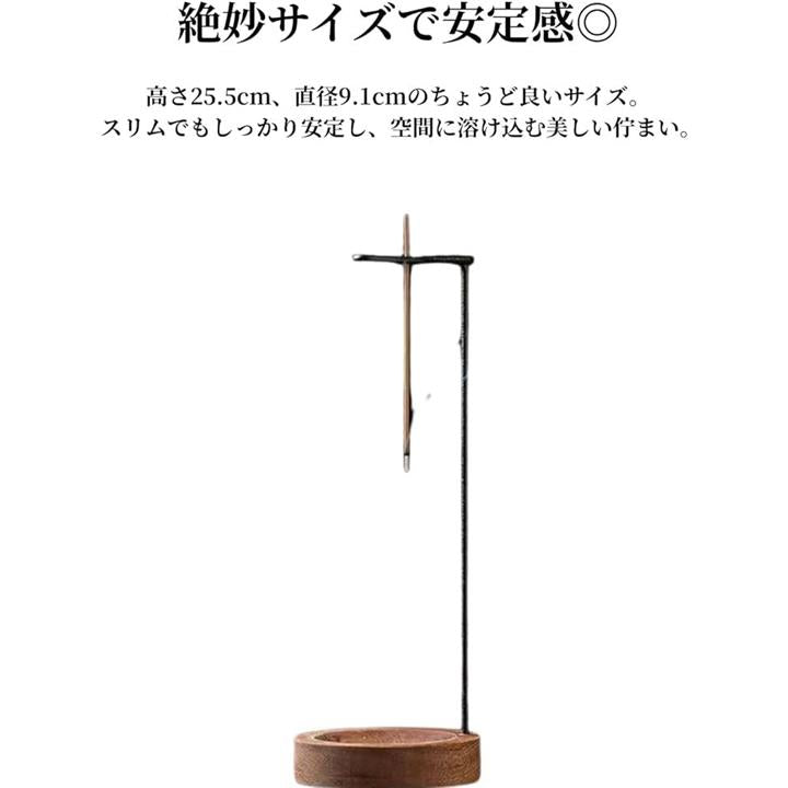 お香立て 線香ホルダー 和モダンデザイン|木製台座&金属フレーム 高さ25.5cm 灰が散らからない 香炉 おしゃれインテリア 円形 ブラック