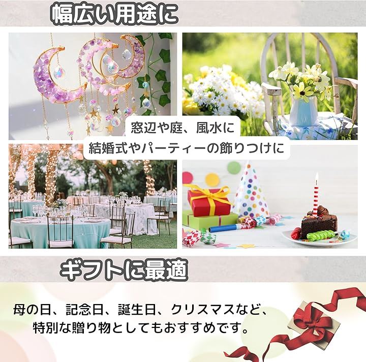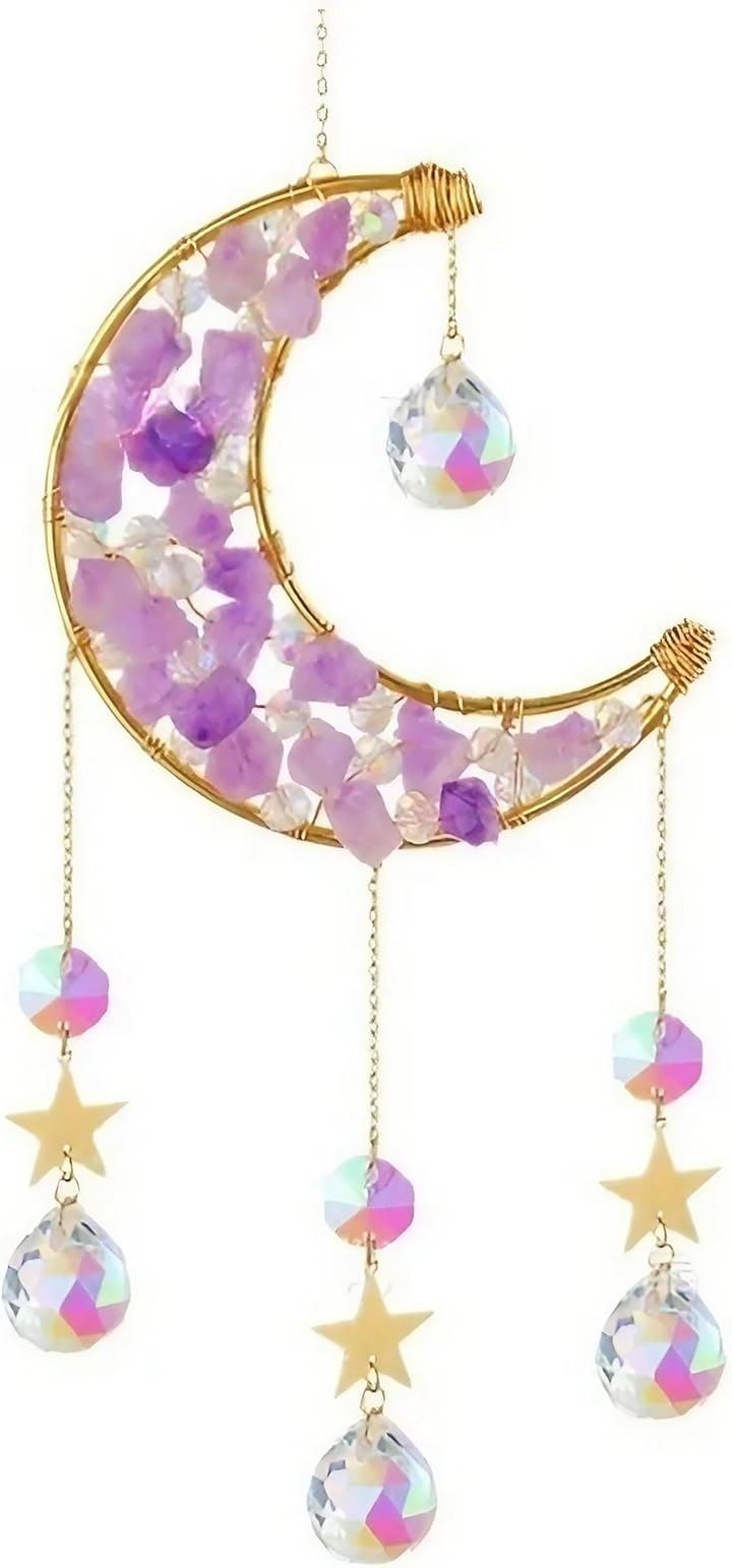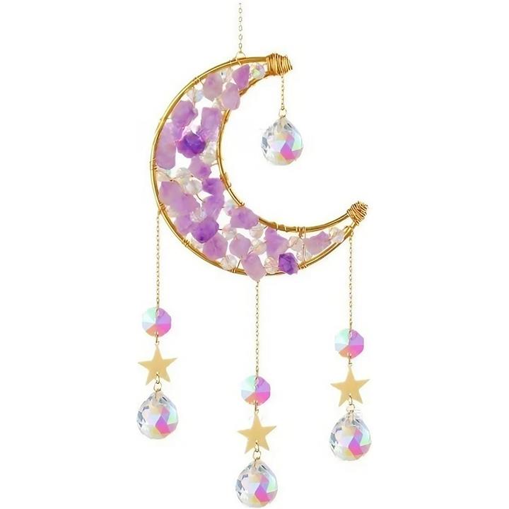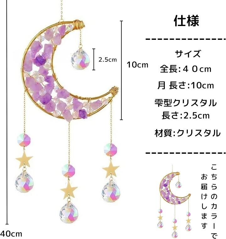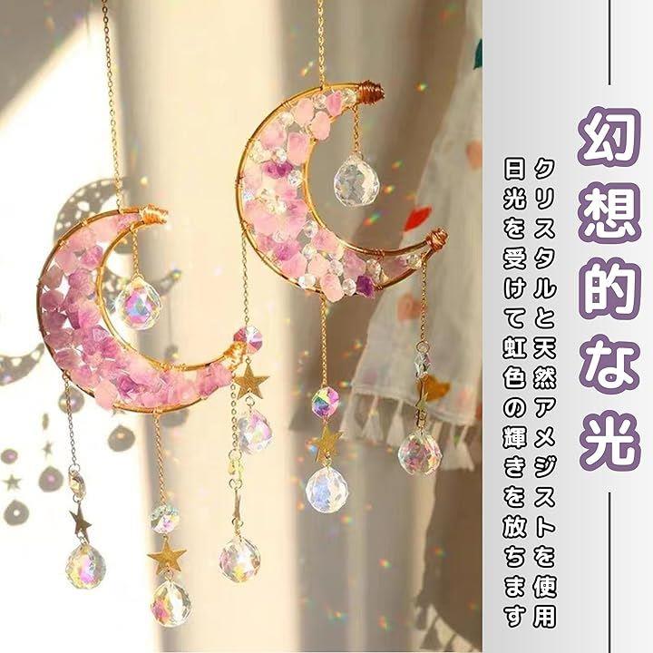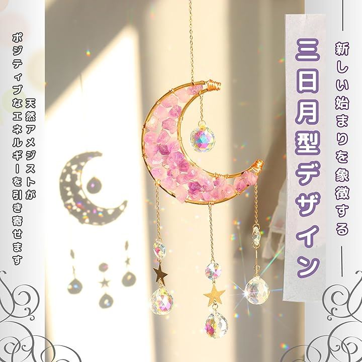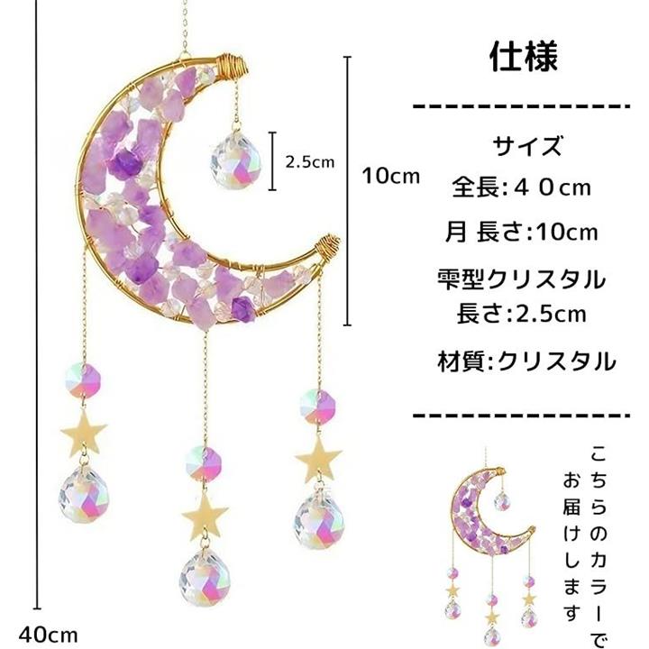サンキャッチャー クリスタル しずく型 アメジスト 三日月 星 窓 吊り下げ