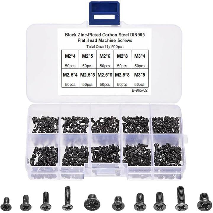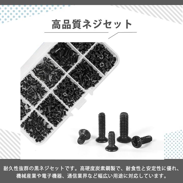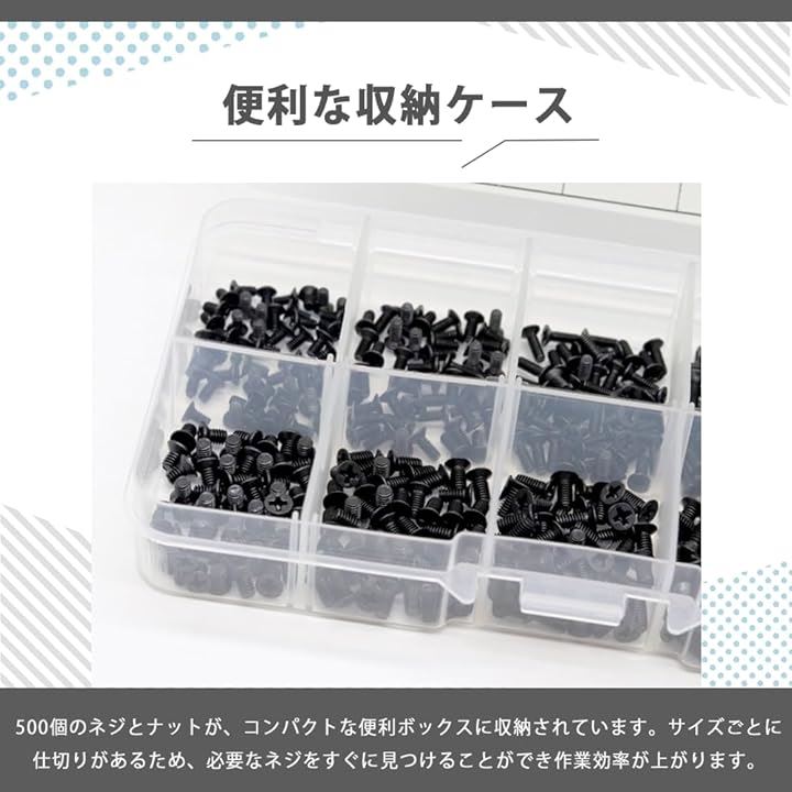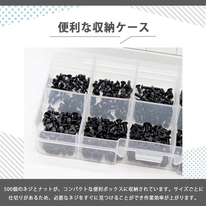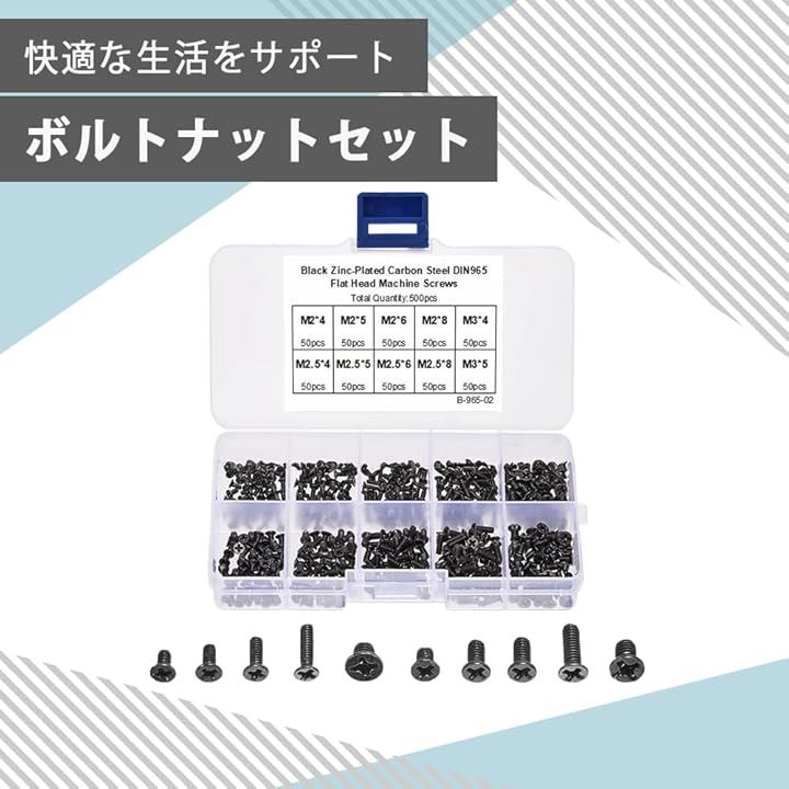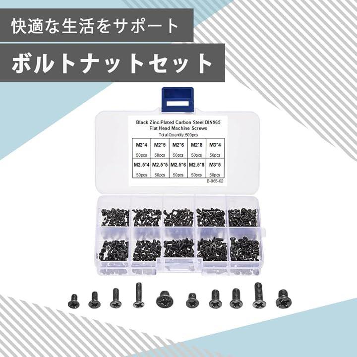 ネジ ネジセット ボルト ナット 皿ネジ 黒ネジ 炭素鋼 平頭沈頭 機械ねじ 修理 ケース付き