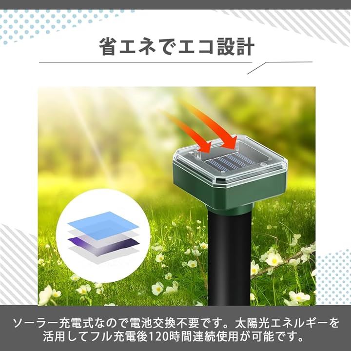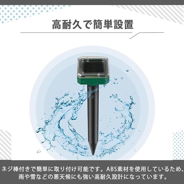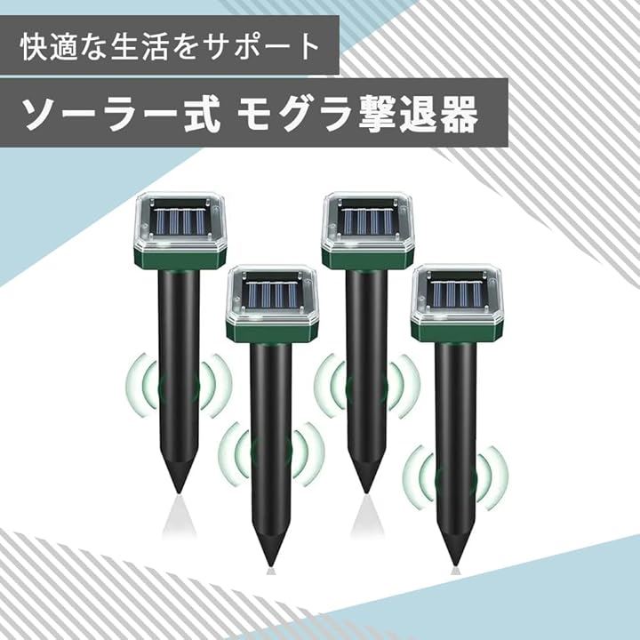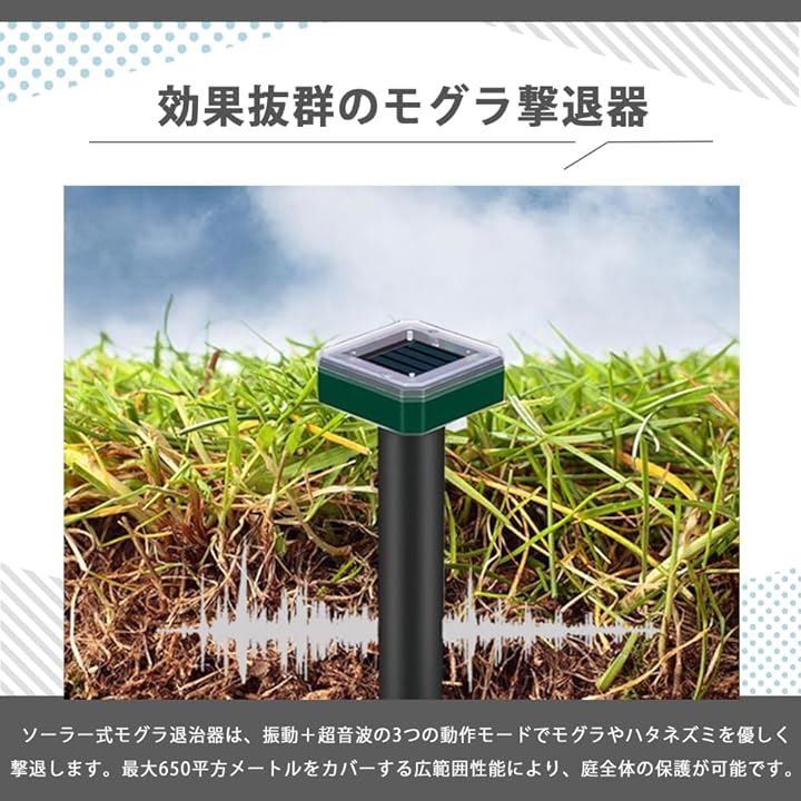 モグラ退治 もぐら 駆除 動物撃退器 害獣よけ ソーラー式 芝生 菜園保護 超音波 地面に挿す