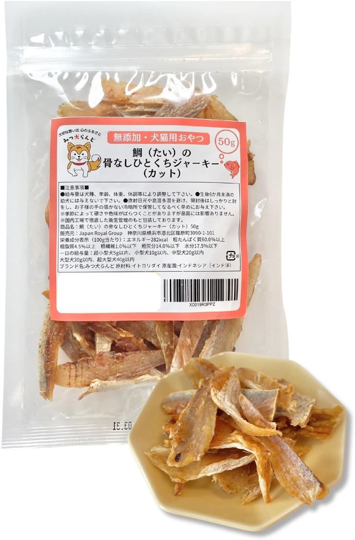 鯛 たいの骨なしひとくちジャーキー カット 犬猫用 50g