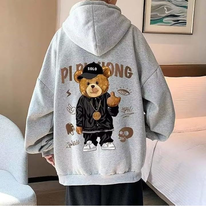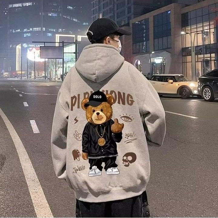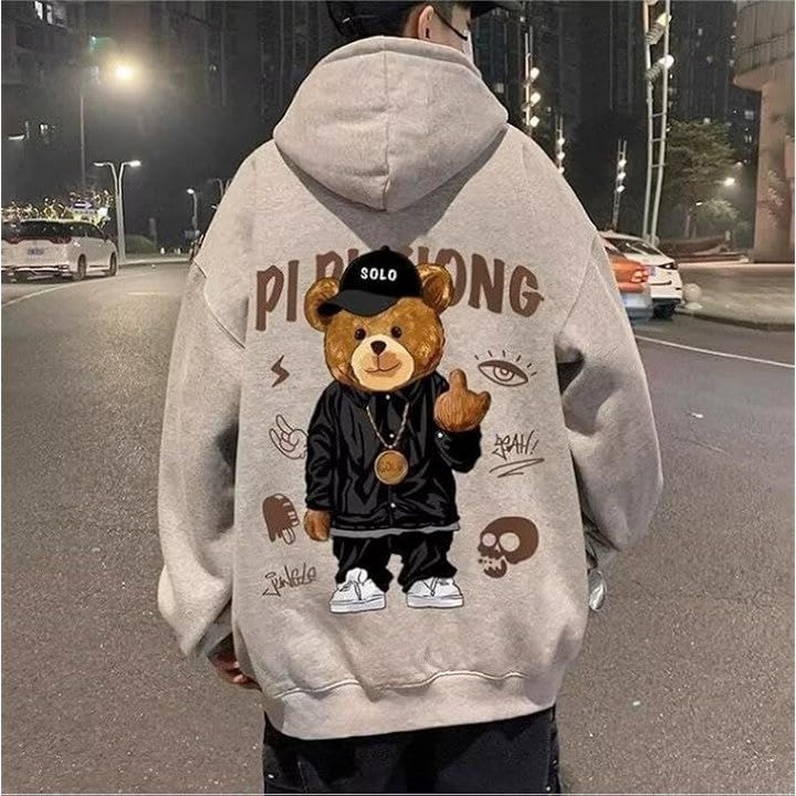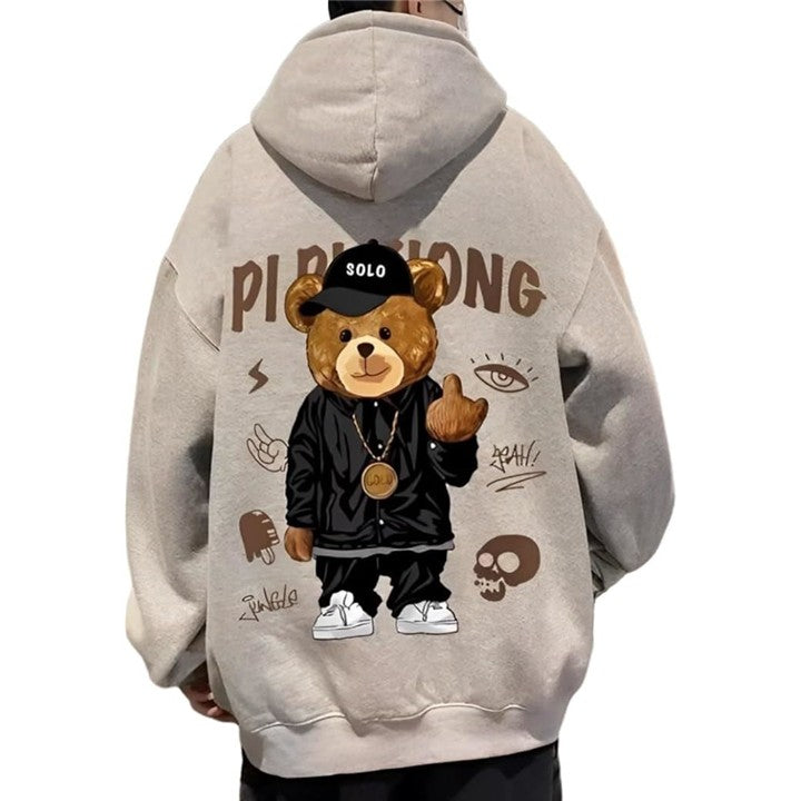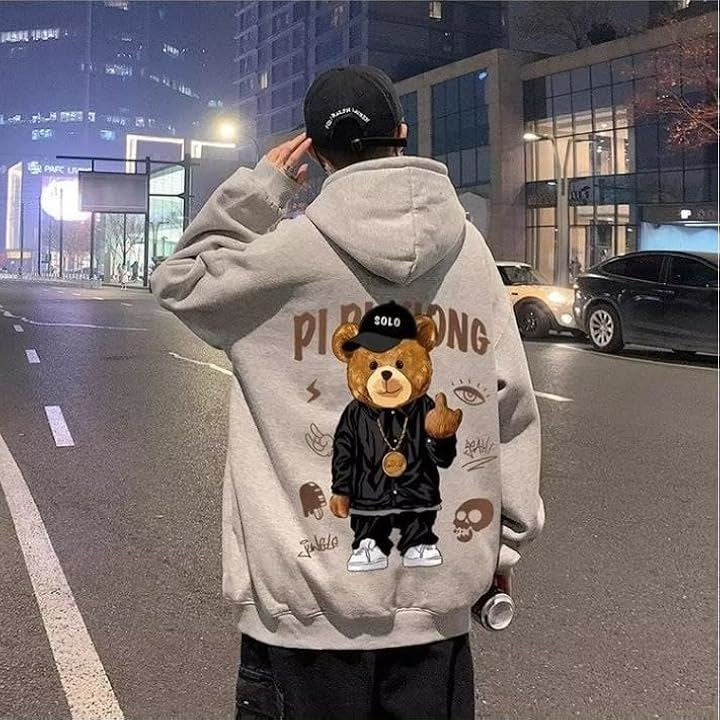 エンプティオ メンズ パーカー 厚手 フード付き アメカジ バックプリント かっこいい キャラクター ゆったり プルオーバー スウェット ストリート 長袖 かわいい カラフル くま シンプル 部屋着
