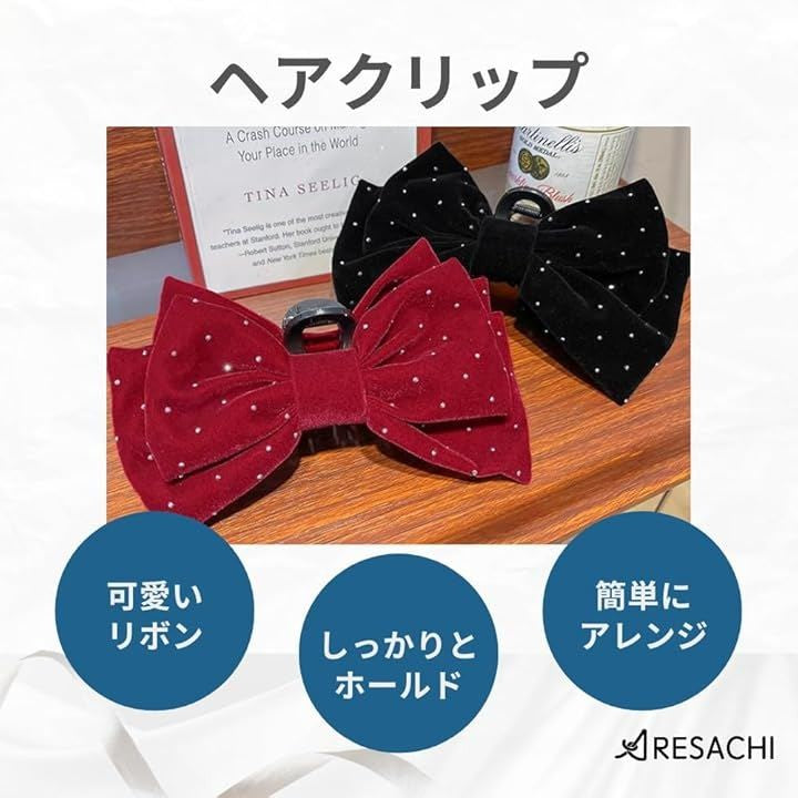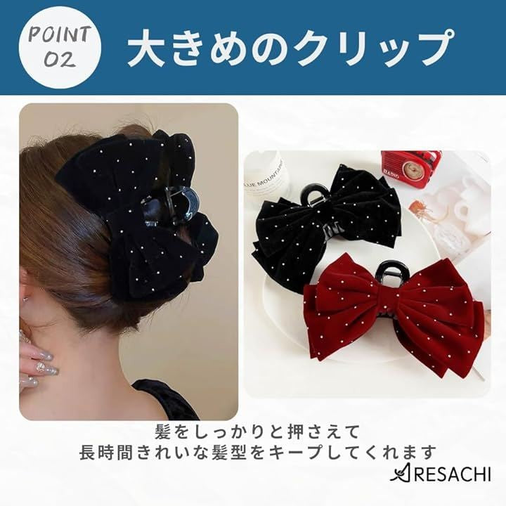 ヘアクリップ バンスクリップ 大きめ リボン 髪留め ドット ヘアアクセサリー