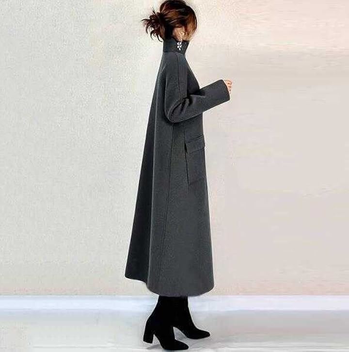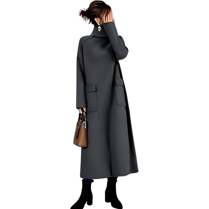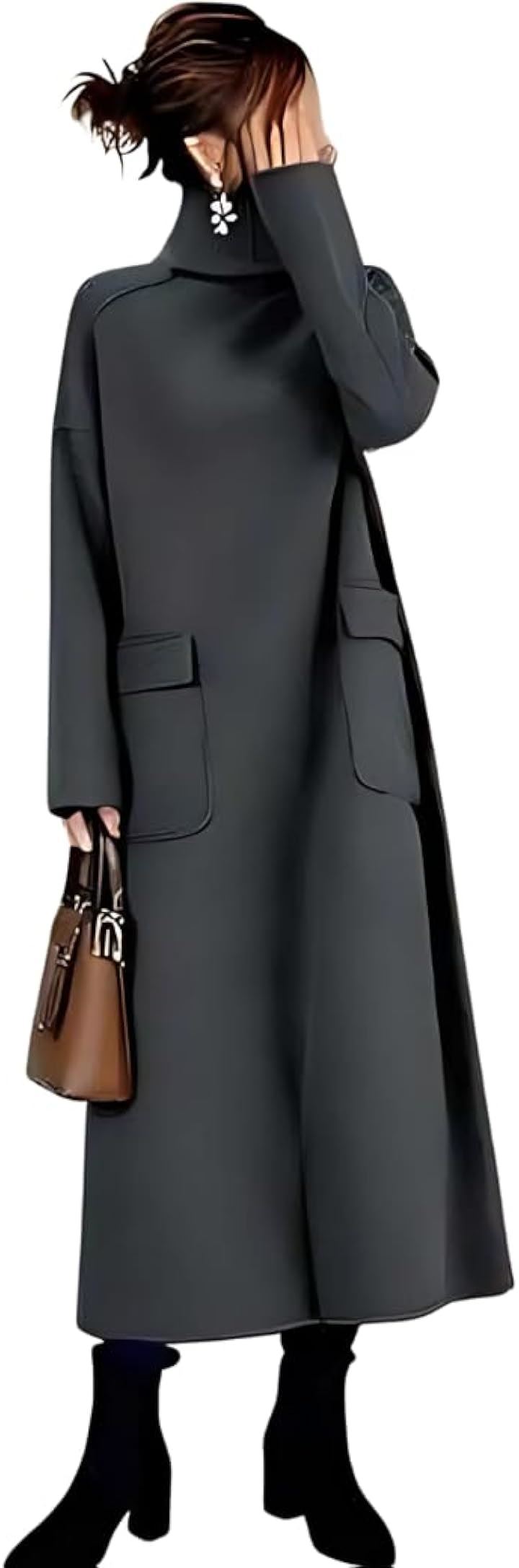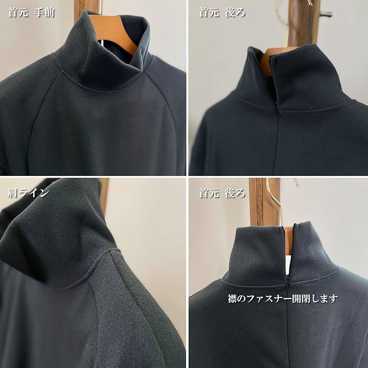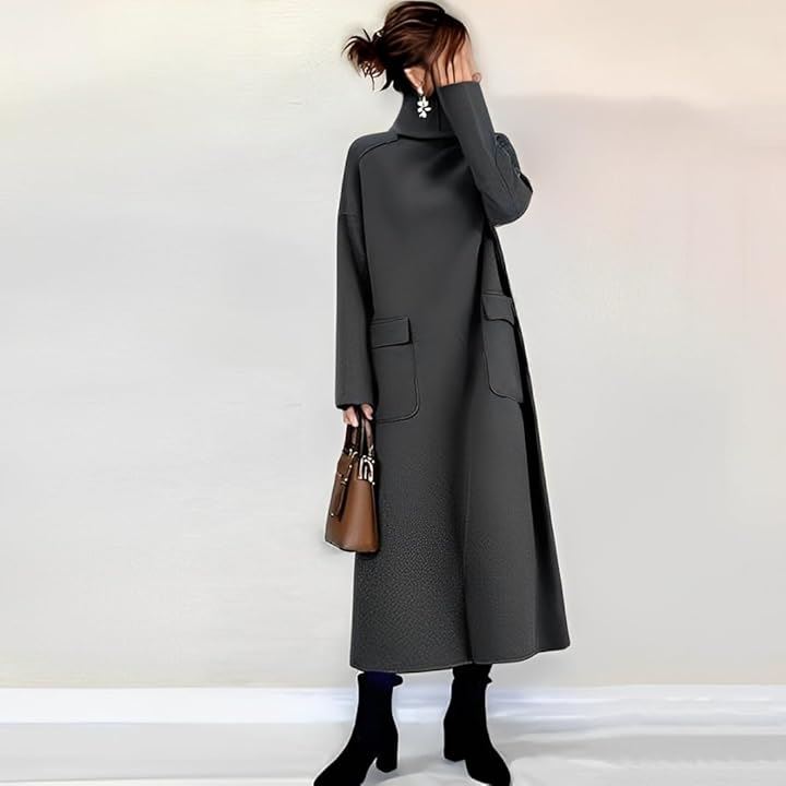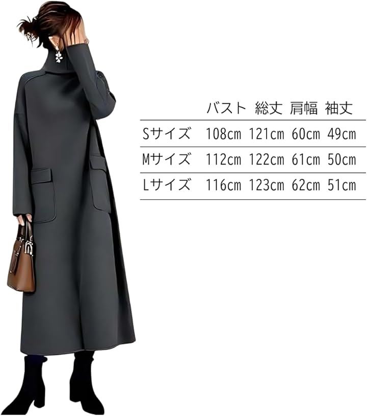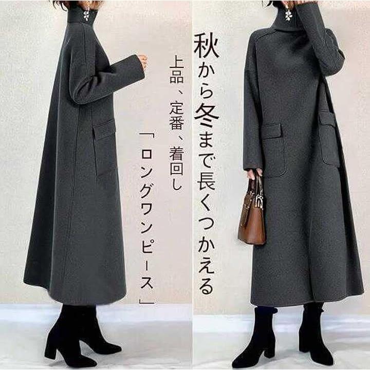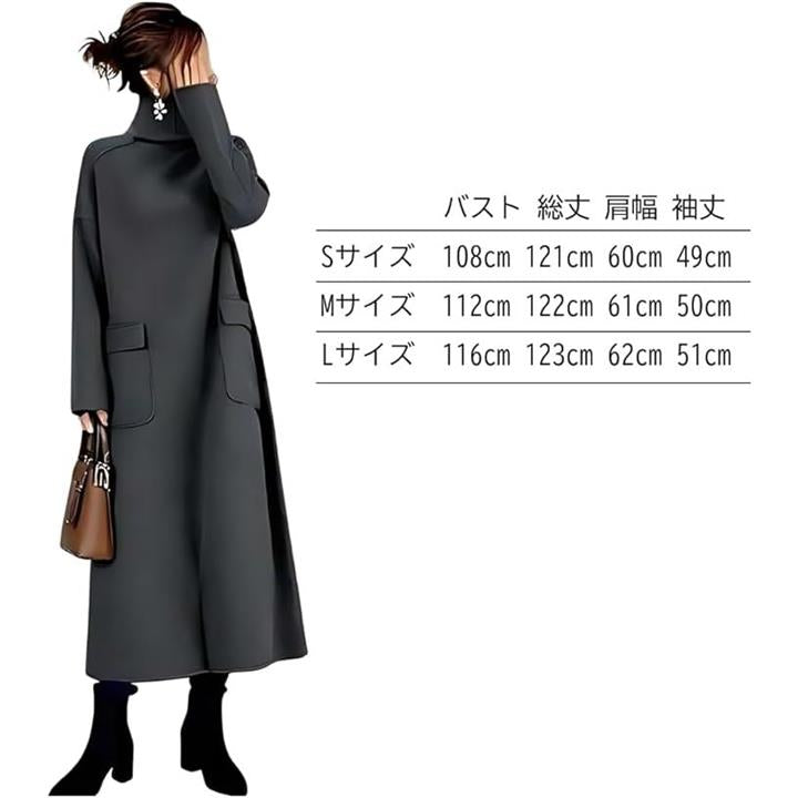 レディース ロング ワンピース ラシャ タートル ハイ ネック 着痩せ マキシ 丈 長袖 体型カバー