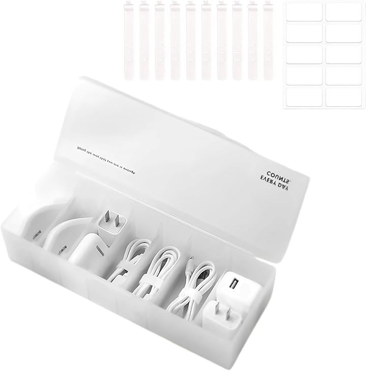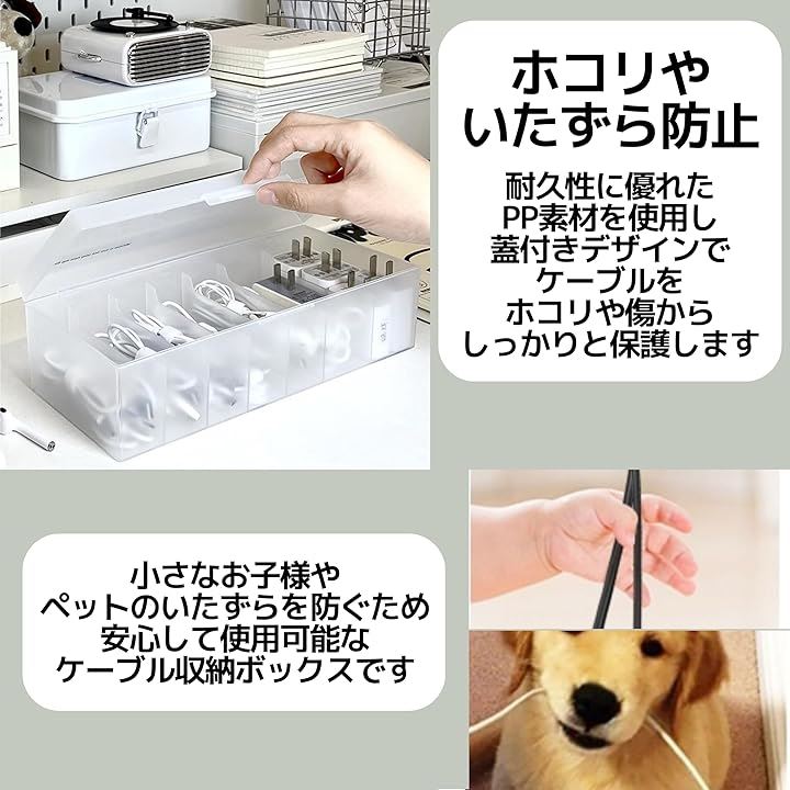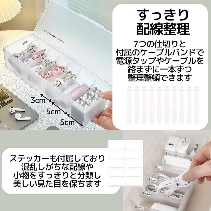 ケーブル収納ボックス コード収納ボックス USB 充電ケーブル 配線 整理 バンド付 仕分け 白