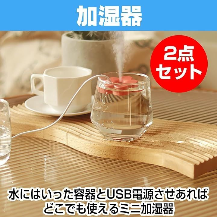 加湿器 花弁 2個セット 浮かべる 花びら ポータル 小型 USB給電 卓上 オフィス リビング ベッドルーム 乾燥防止