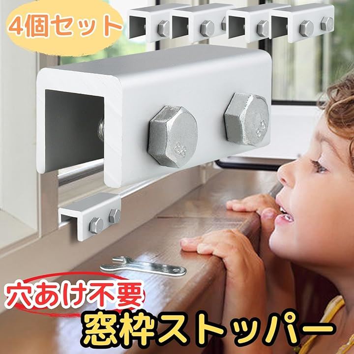 窓 ロック ストッパー 4個入 防犯 子供 補助錠 サッシ a419
