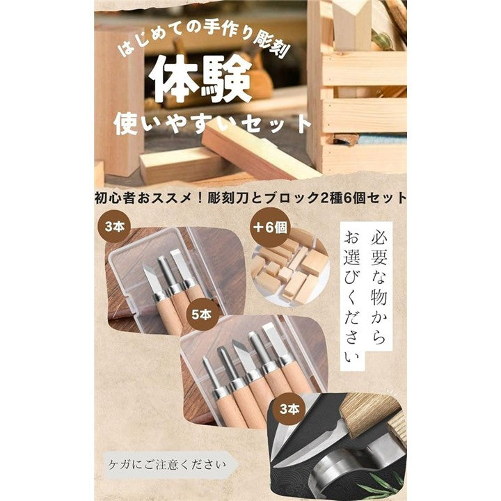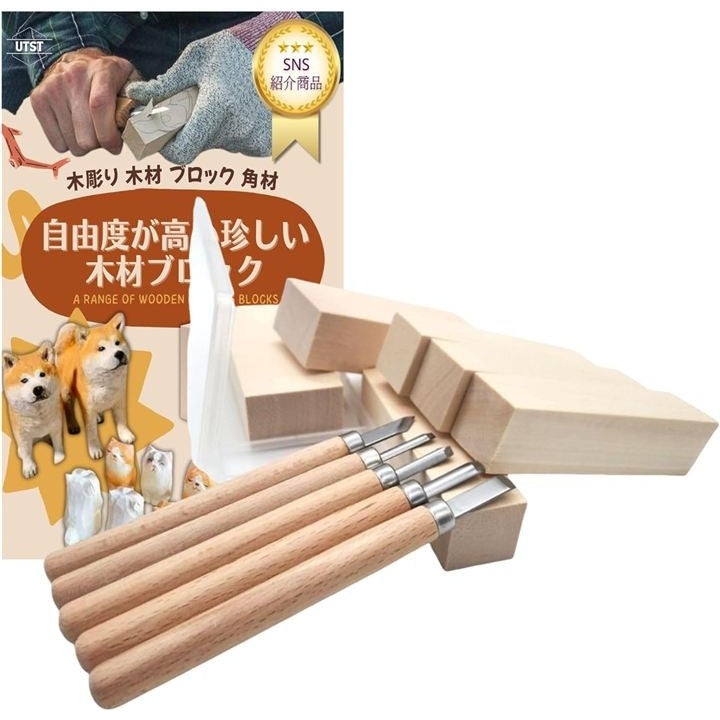 彫刻ナイフ 木彫り キット 初心者 彫刻刀 木材 ブロック カービングナイフ 角材 木彫りブロック