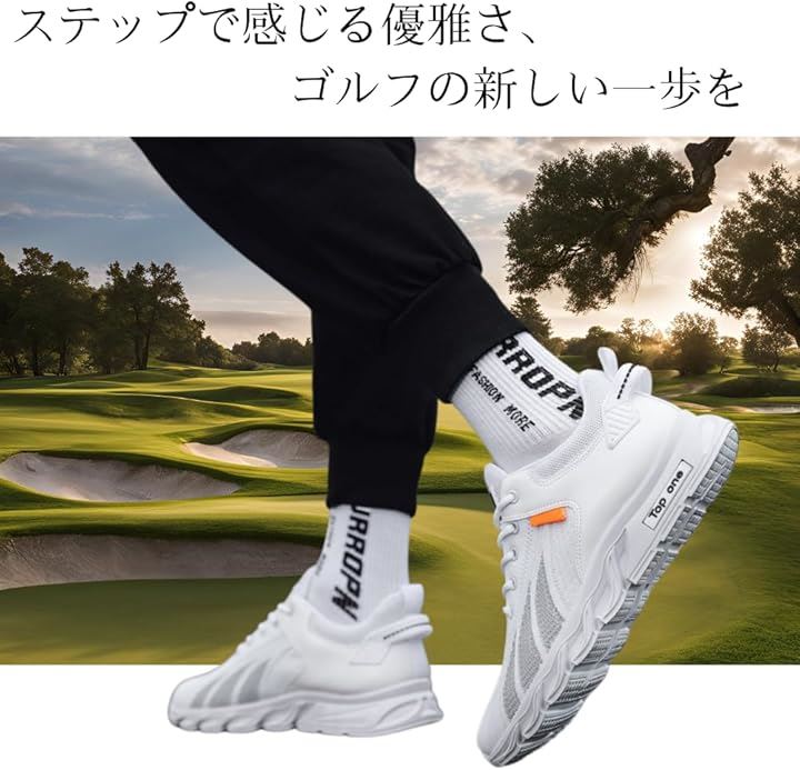 ゴルフ以外にも普段履きできるデザインで、ゴルフ場でもファッショナブルな印象を与えます。