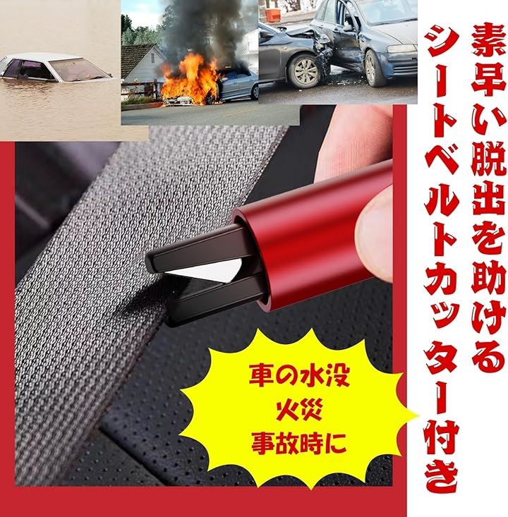 安全ハンマー 緊急脱出 車 脱出用 シートベルトカッター付 防災 a433