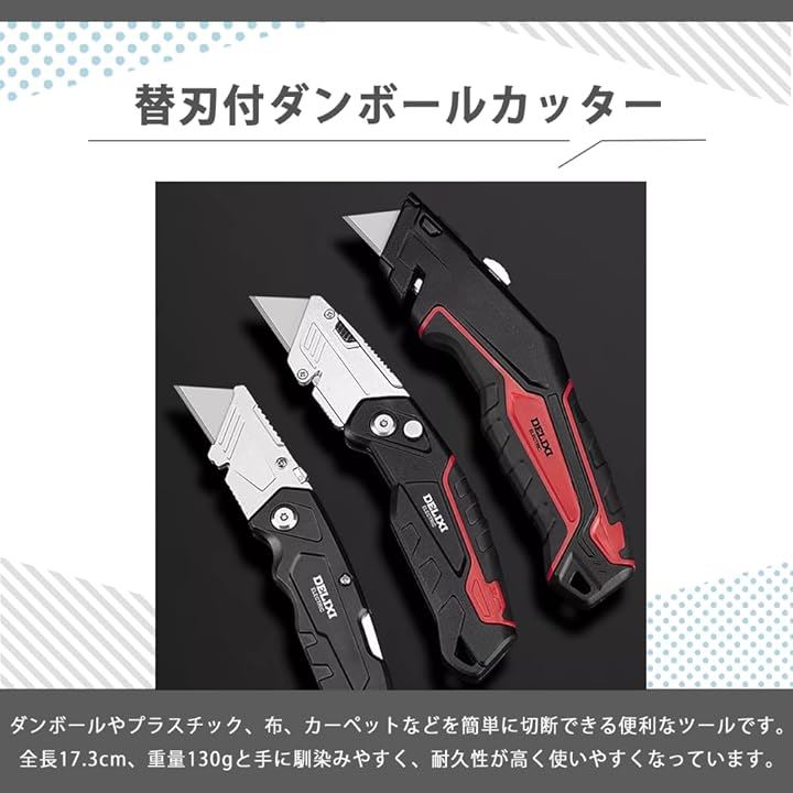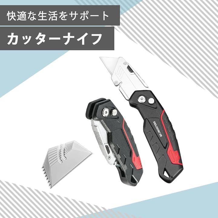 ダンボールカッター カッターナイフ 折り畳みカッター クイックリリース クリップ付き 切れ味良い 替え刃付き