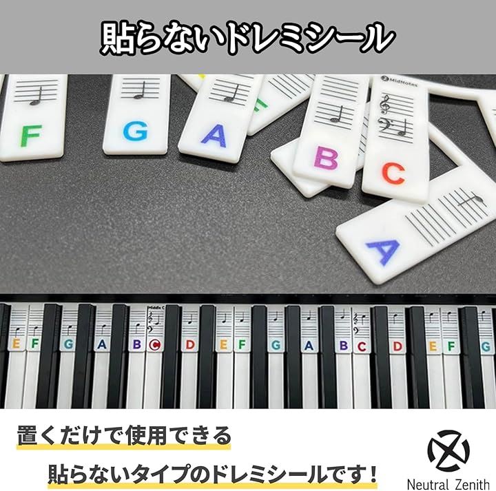 ドレミシール 音符シール シリコンピアノステッカー 初心者 キーボード 鍵盤ハーモニカ レッスン アクセサリ