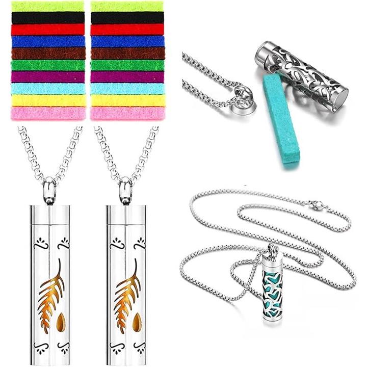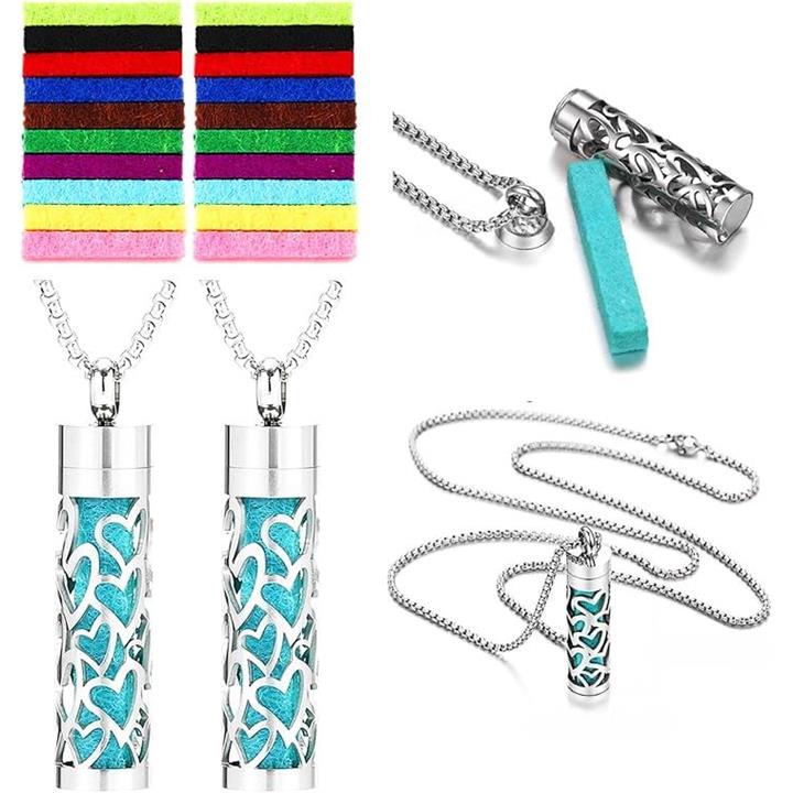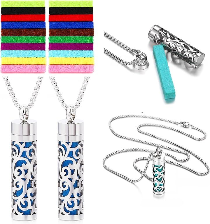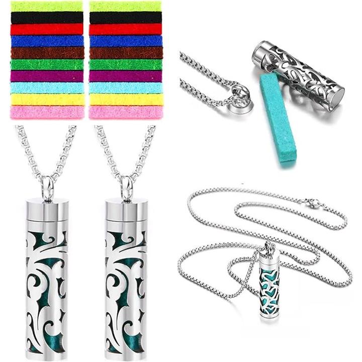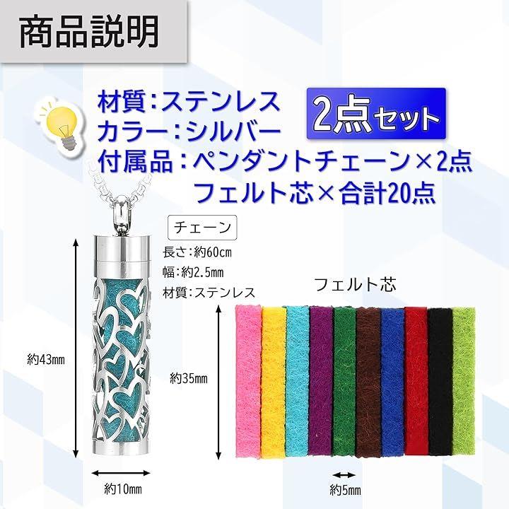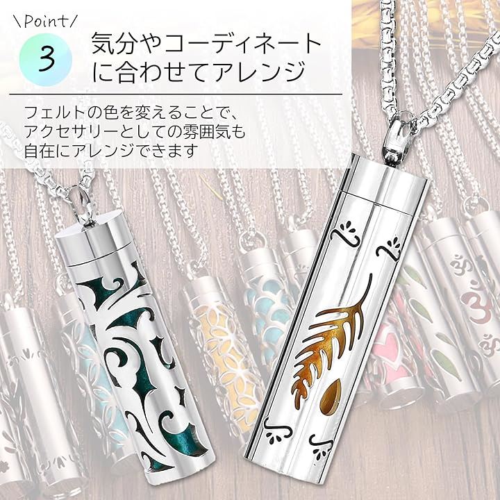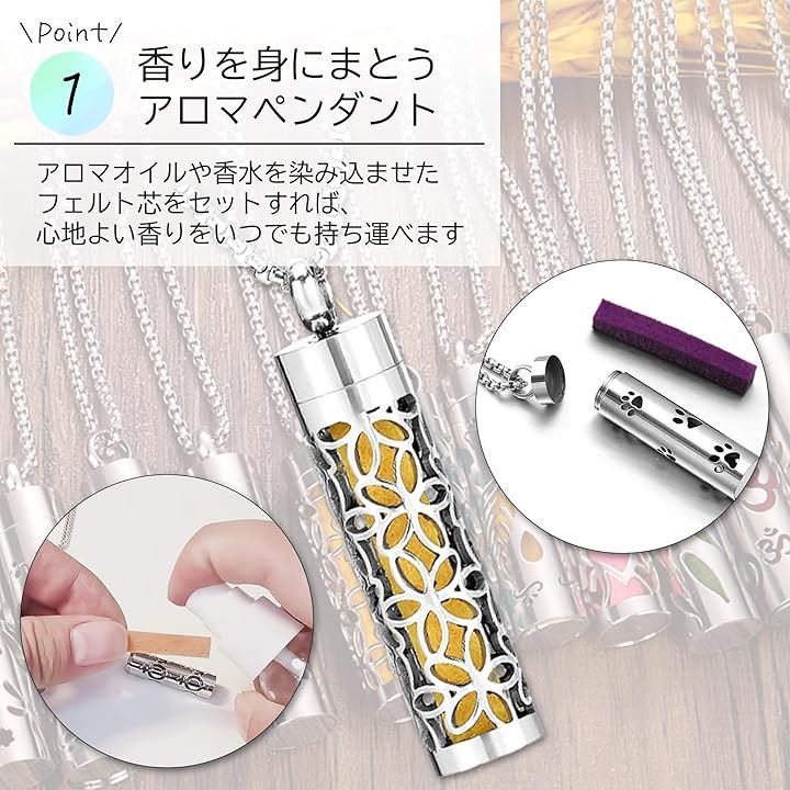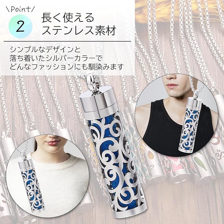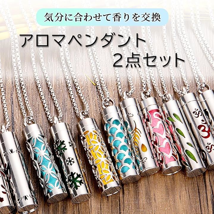 アロマペンダント ネックレス 2点セット ステンレス ロケット 透かし彫り フェルト芯付属 香りを交換 アクセサリー 男女兼用 スクロールデザイン 渦巻き模様