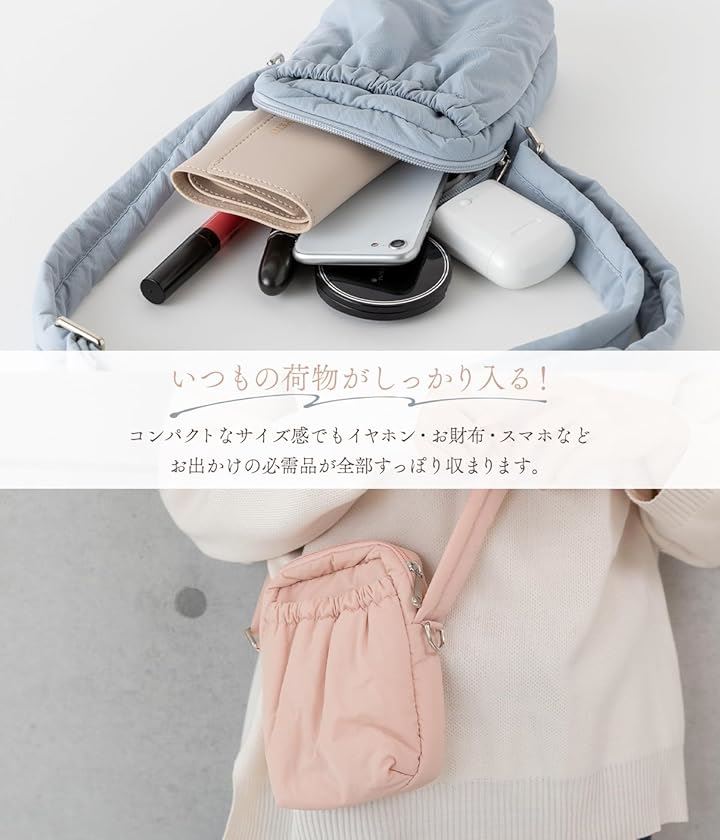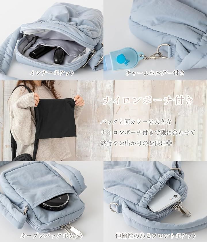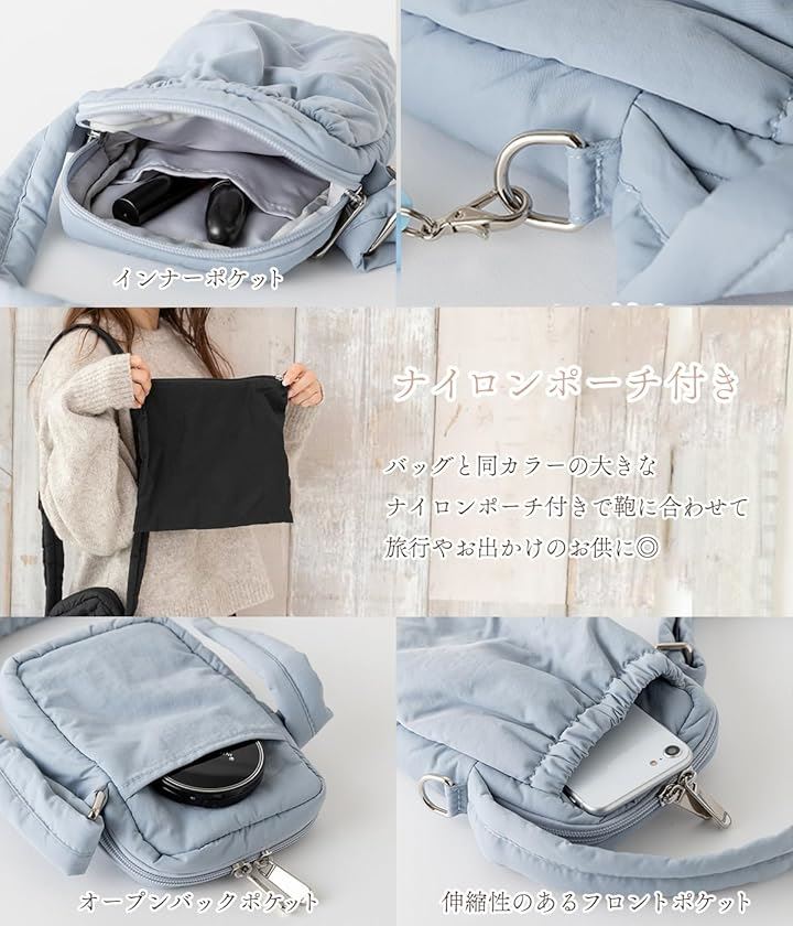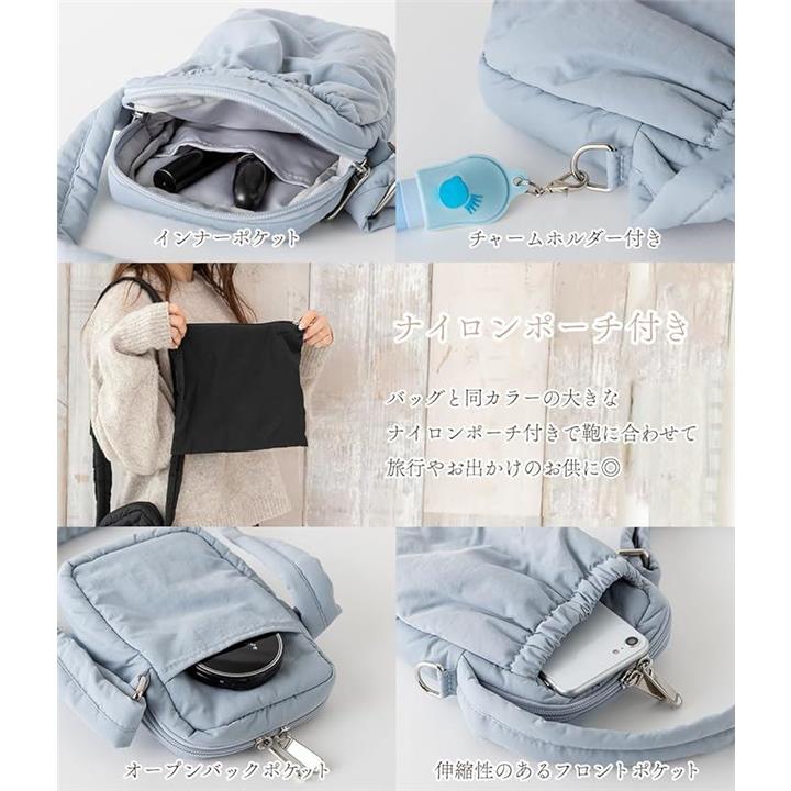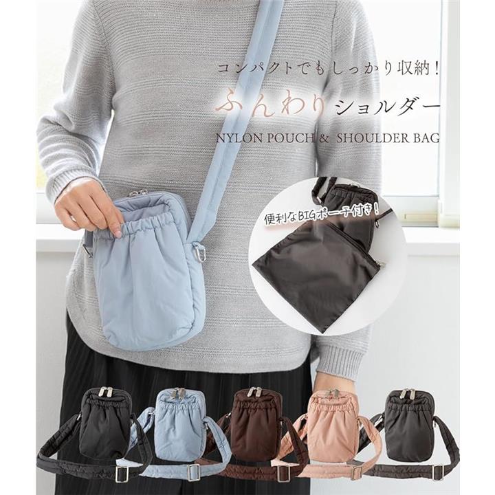 パフデザイン ミニショルダーバッグ ふんわり 軽量 シルバー金具 ポーチ付き