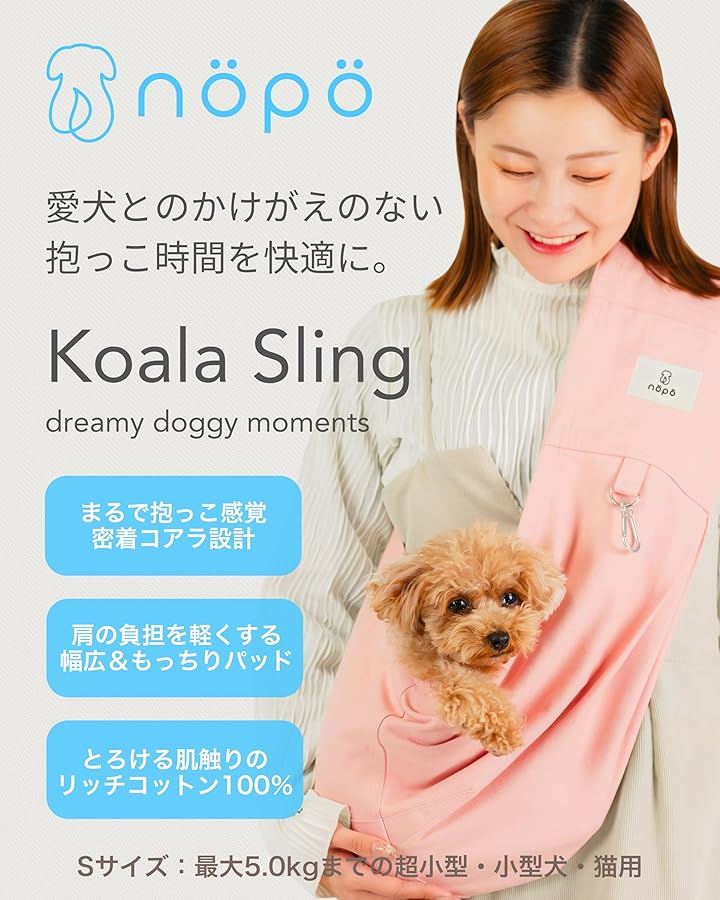 ノポ コアラスリング 肩の負担を軽くする ペット用抱っこ紐 洗濯OK 小型犬 猫