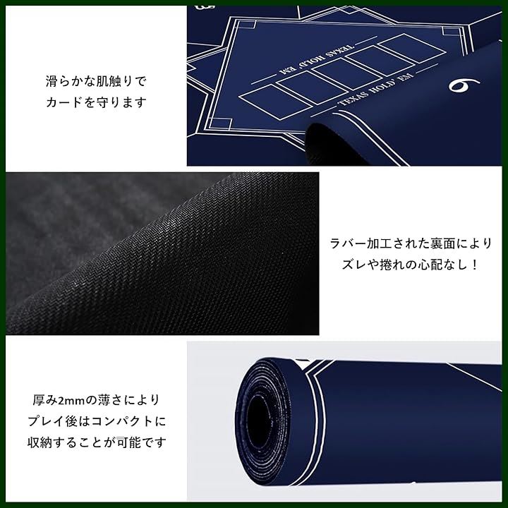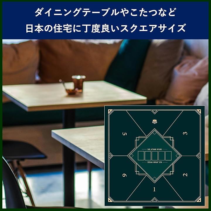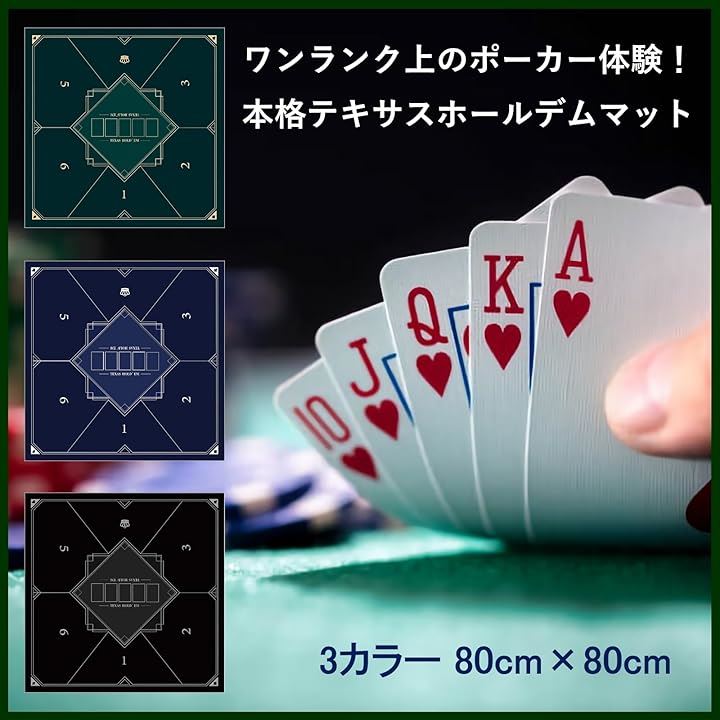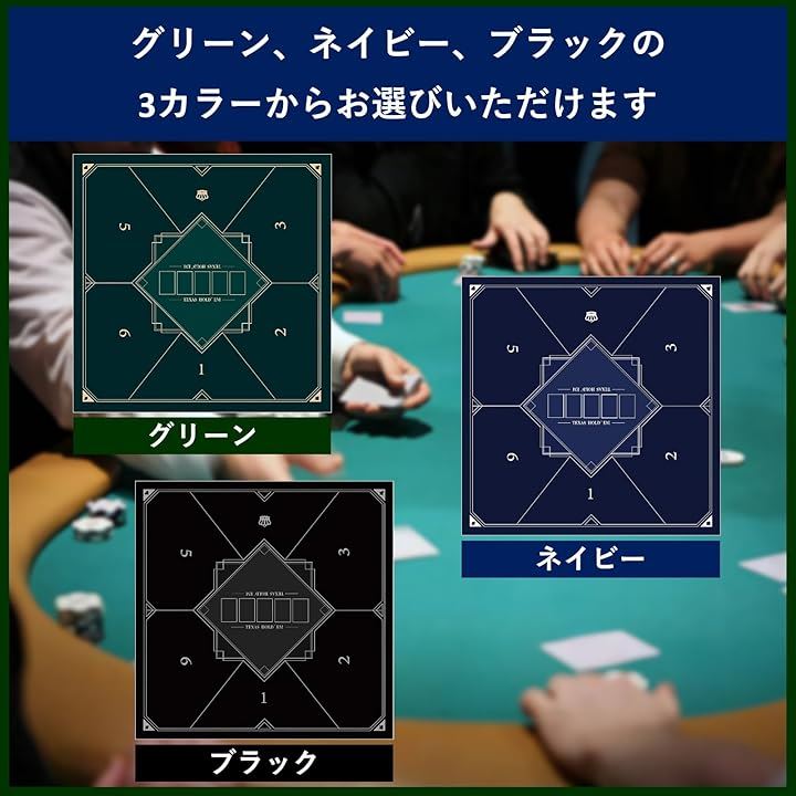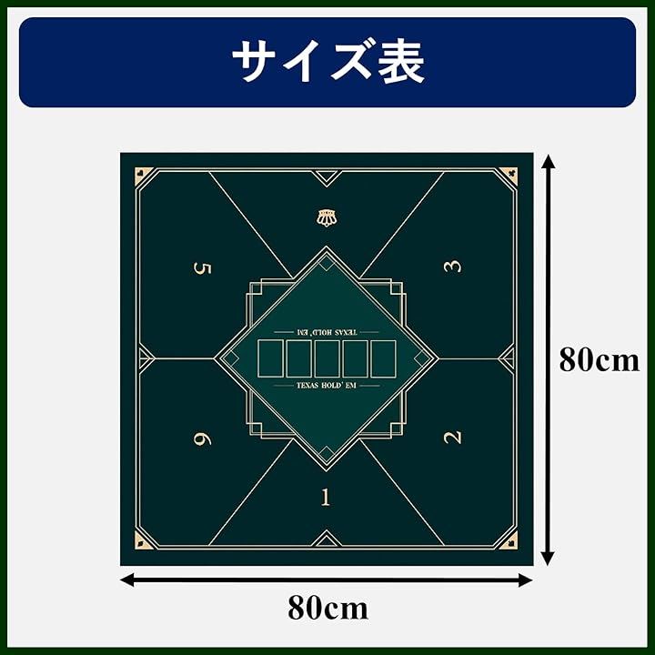 ポーカーマット 正方形 80x80cm テキサスホールデム プレイマット 卓上 最大6人用