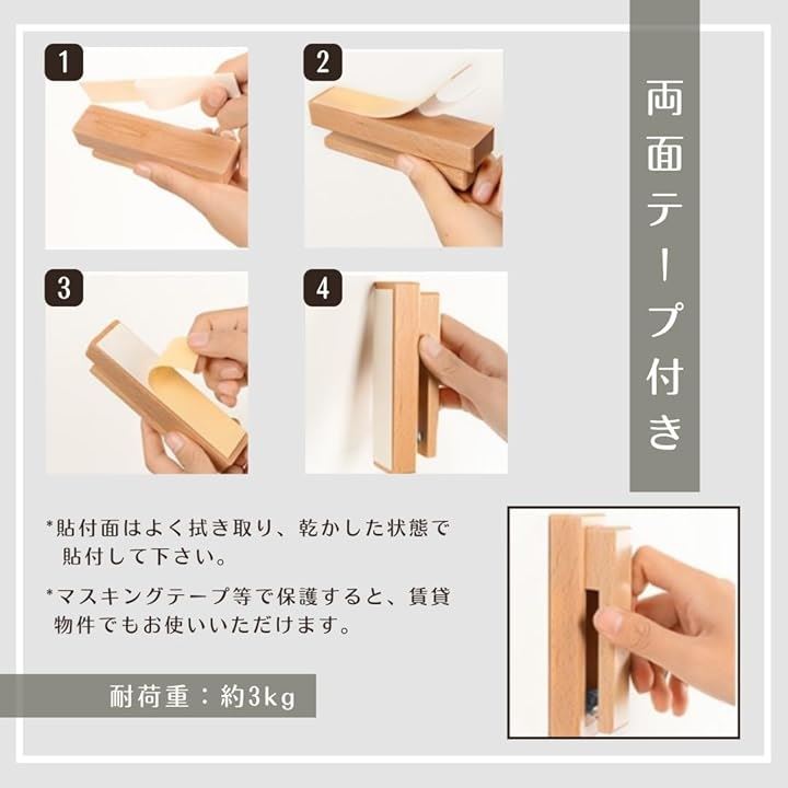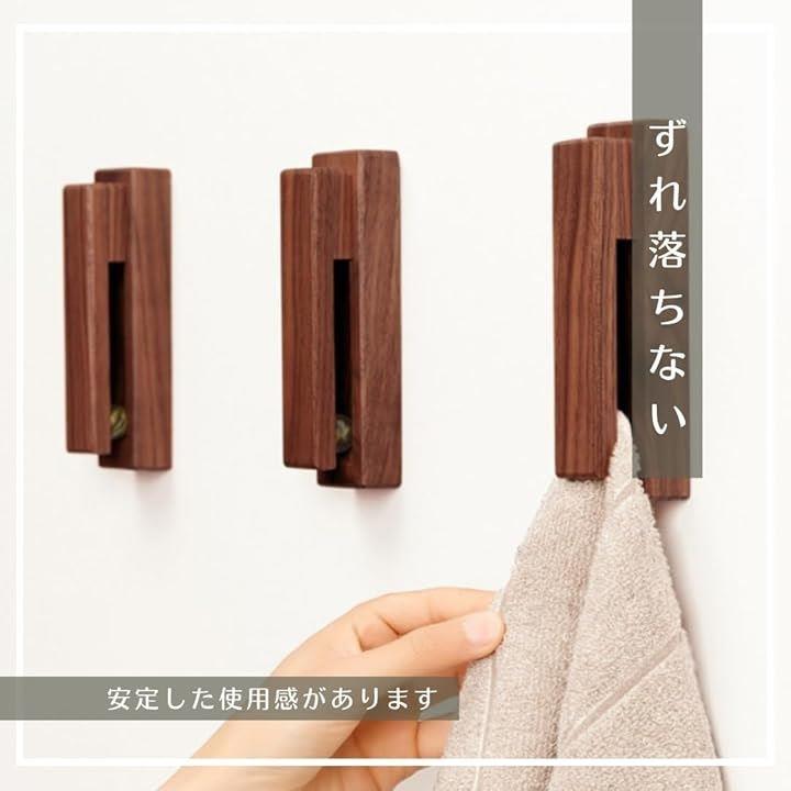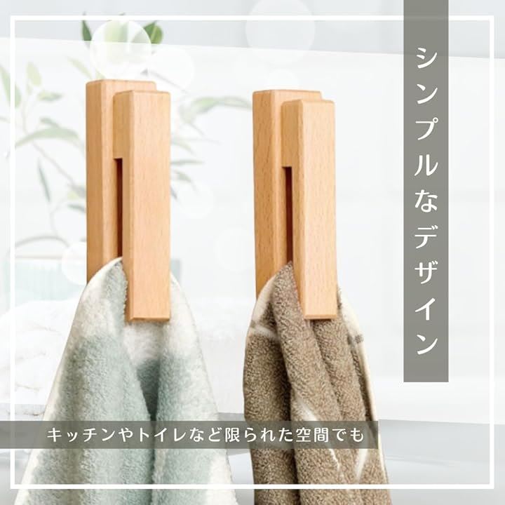タオル掛け タオルハンガー 洗面所 キッチン トイレ 壁 粘着 シール おしゃれ 木製 省スペース 1個
