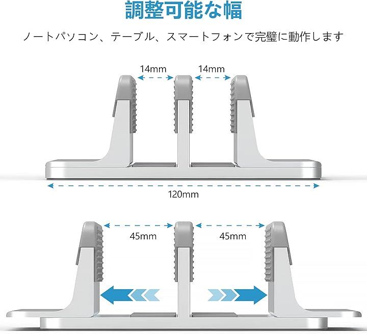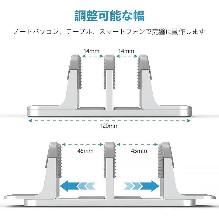 ノートPCスタンド 縦置き 2台用 幅調整可能 アルミ合金製 クラムシェルモード ノートパソコン全般対応