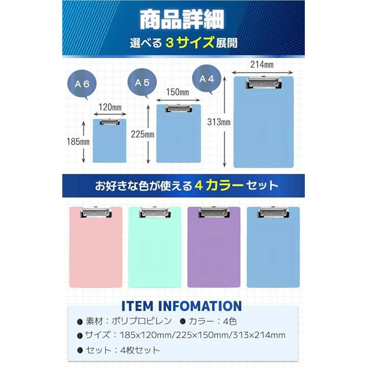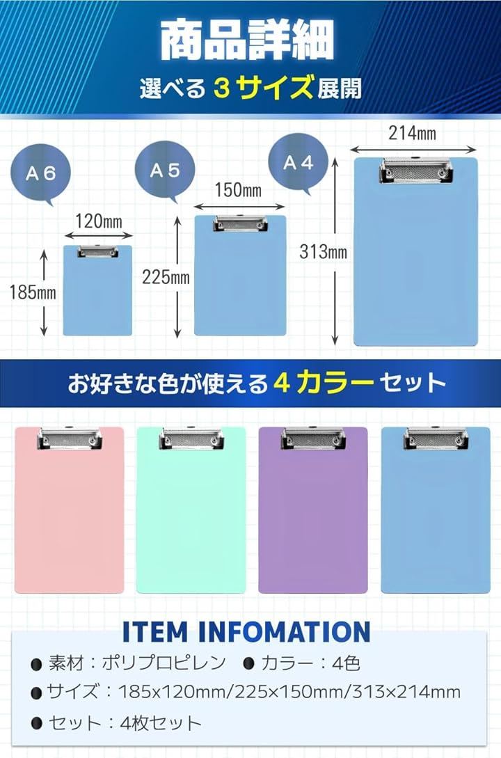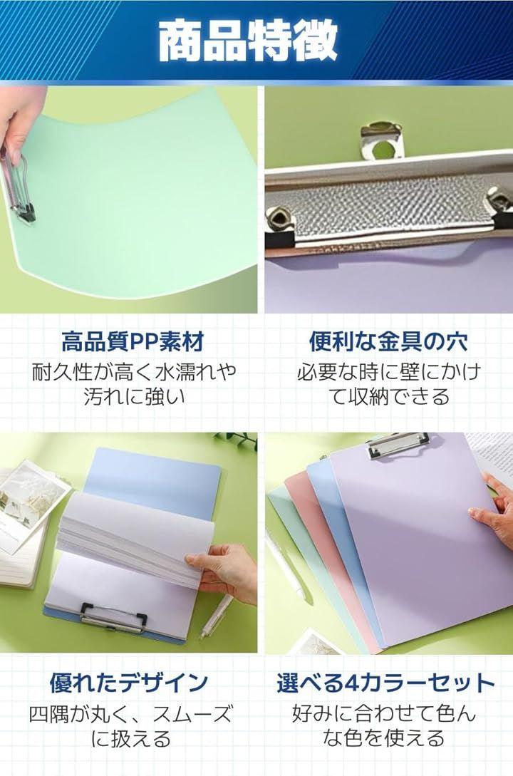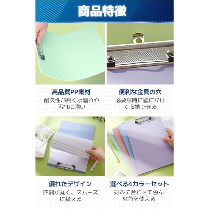 クリップボード バインダー 伝票ホルダー ミニ 丈夫 軽量 シンプル 4色セット