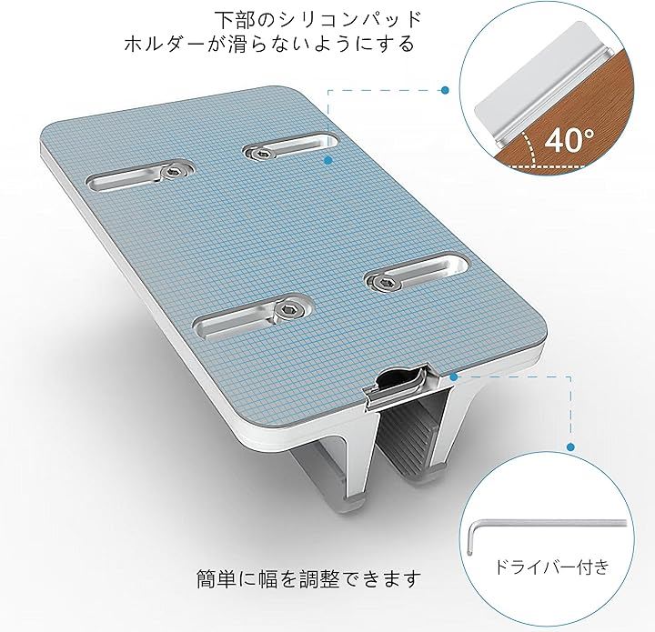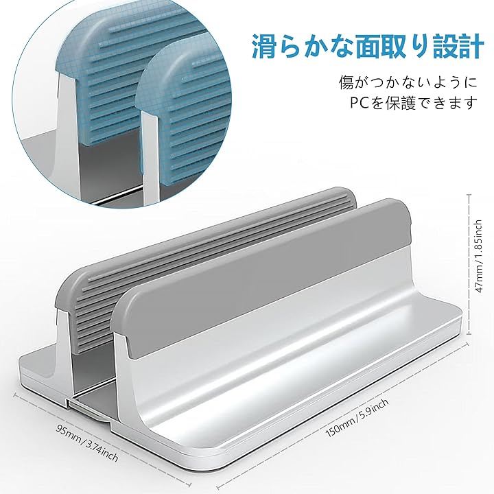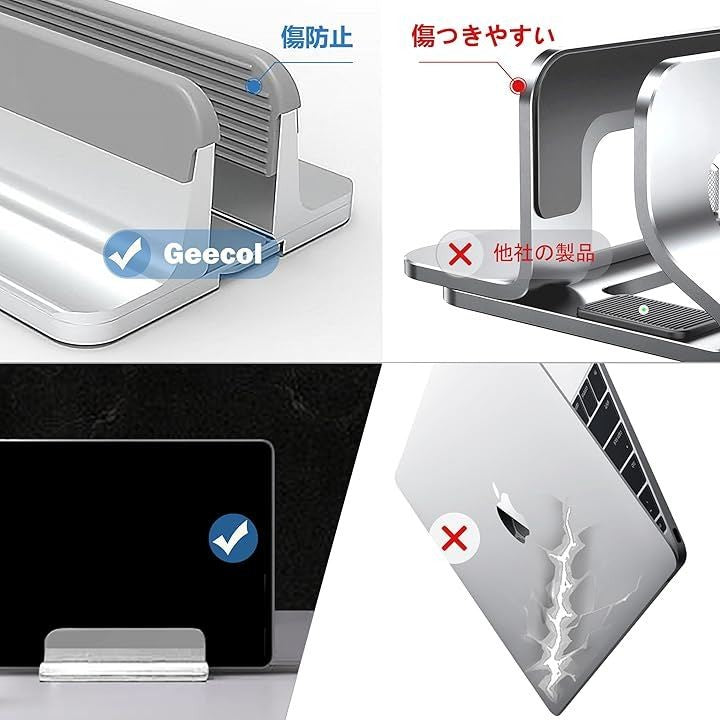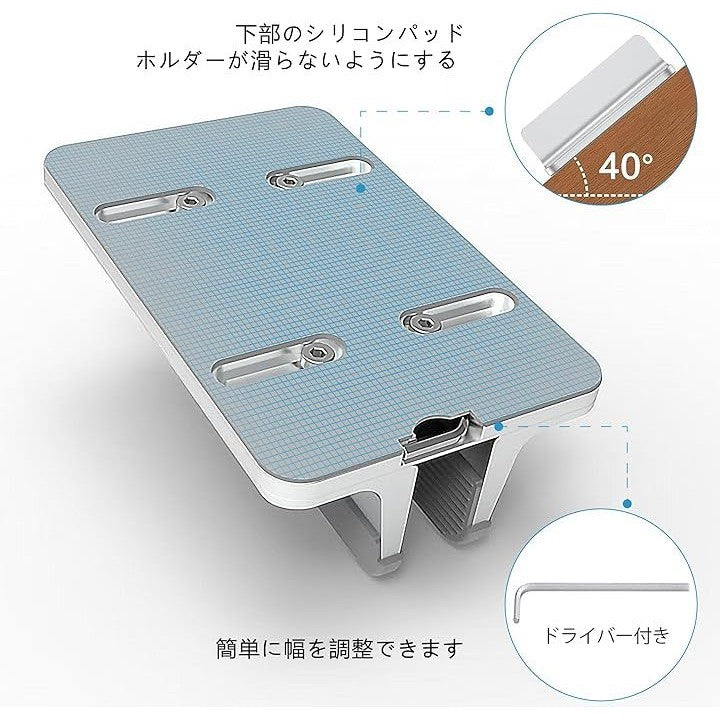 全面シリコン保護&六角レンチ収納付き 調整可能アルミ製ノートパソコンスタンド 360°無死角・冷却機能・縦置き対応 MacBook/Surface/iPad/スマホ多デバイス対応