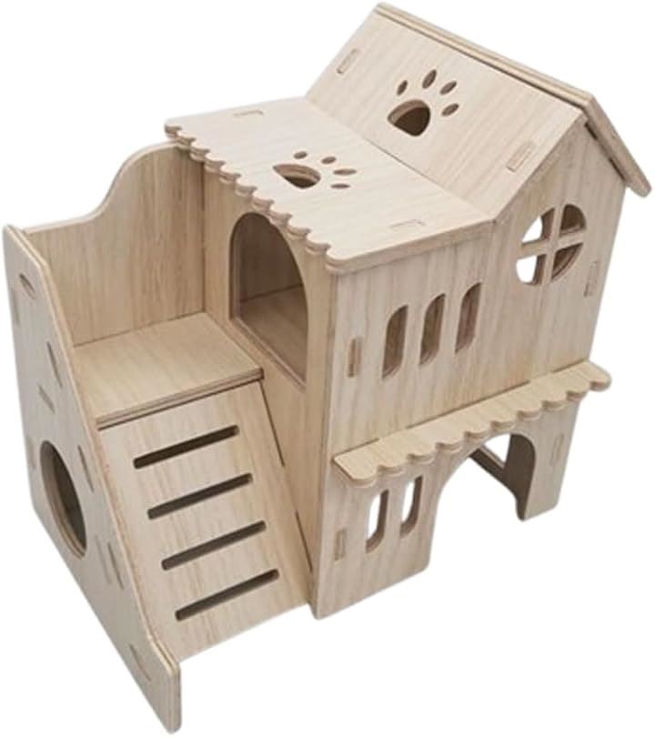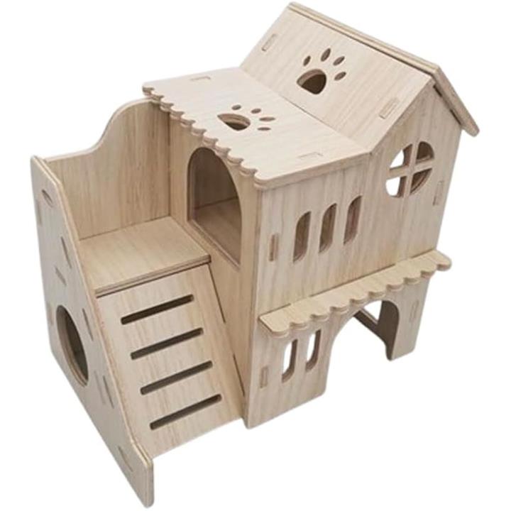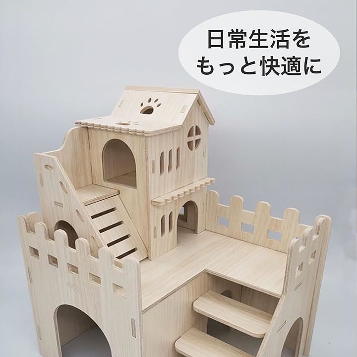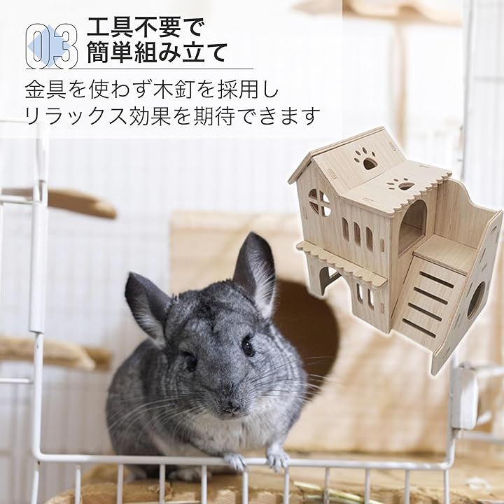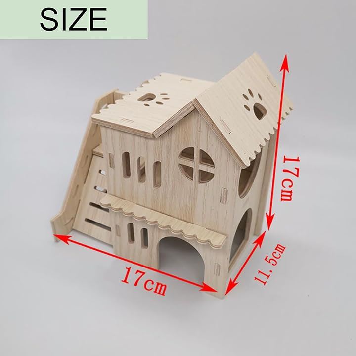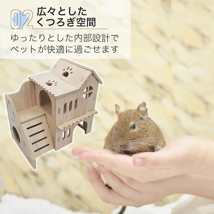 デグー ケージ チンチラ ハウス ハムスター 巣箱 モルモット ステージ 2階 ロフト 木製 17x11.5x17cm