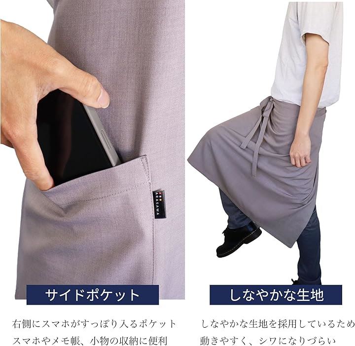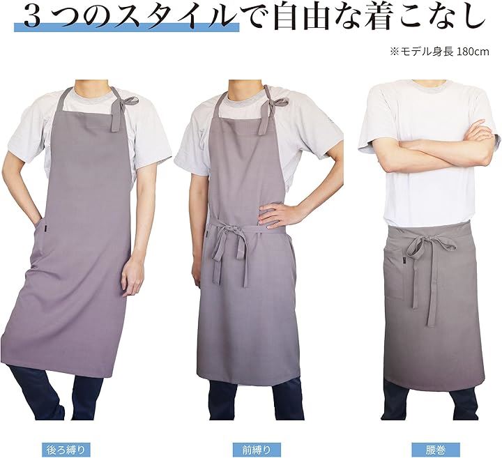 ロングエプロン メンズエプロン 軽い 軽量 速乾 おしゃれ 男性用 前掛け シンプル ポケットつき スタイリッシュ
