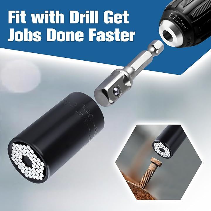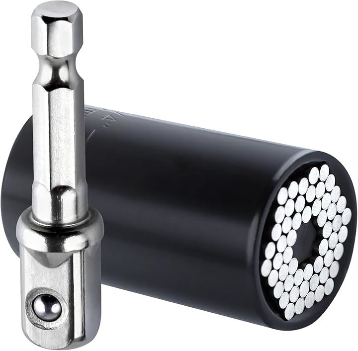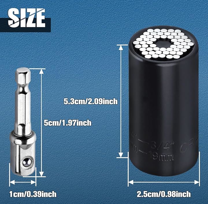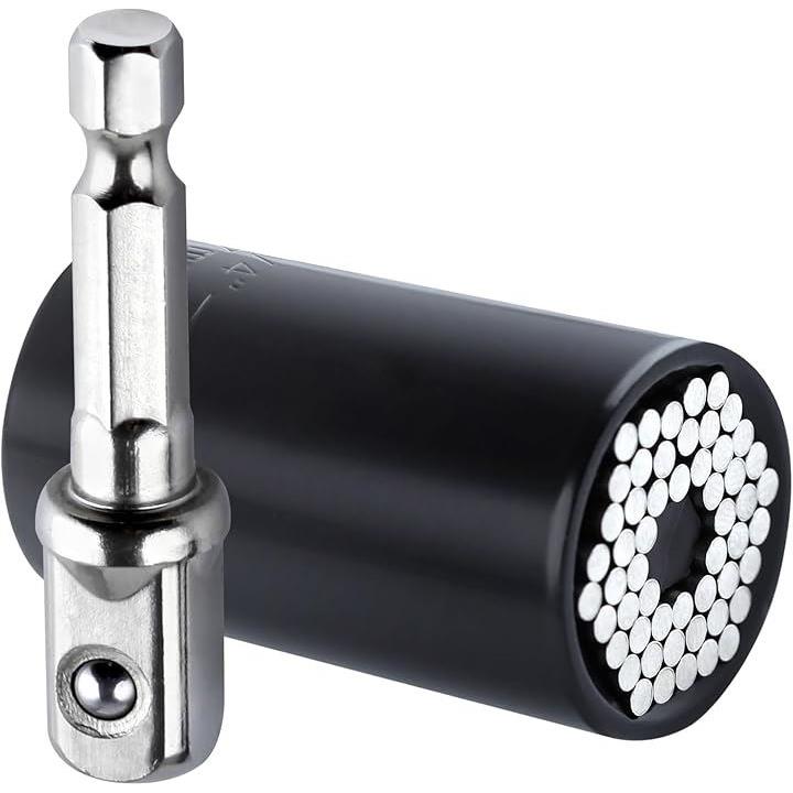 互換品 2点セット ソケット 7~19mm 1/4~3/4インチ対応 ユニバーサルソケット ソケットレンチ グリッパー ドリルアダプター ユニバーサルソケットツール ユニバーサルソケットレンチセット 54本スチールのピン内蔵 多機能 3/8インチ DIY