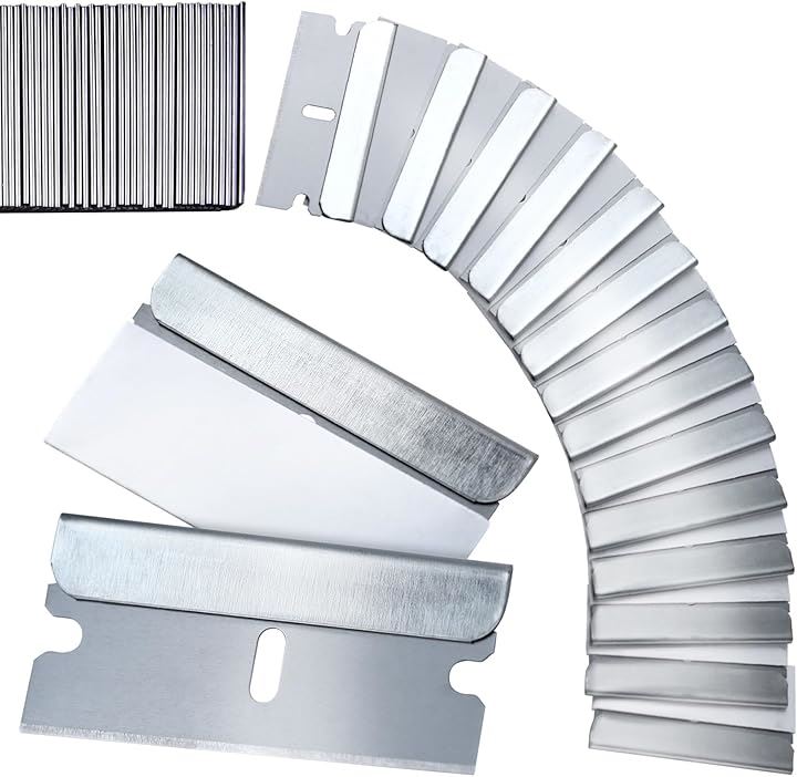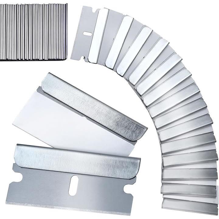 100枚入り スクレーパー 替刃 スクレーパー金属片面刃 スクレーパーブレード 剃刀 交換部品 工具 ステッカー/シール ラベル 接着剤剥がし 車検カーボンシールはがし 両面テープ剥がしヘラ