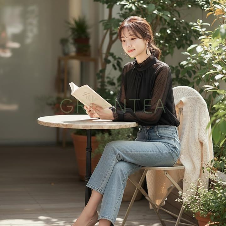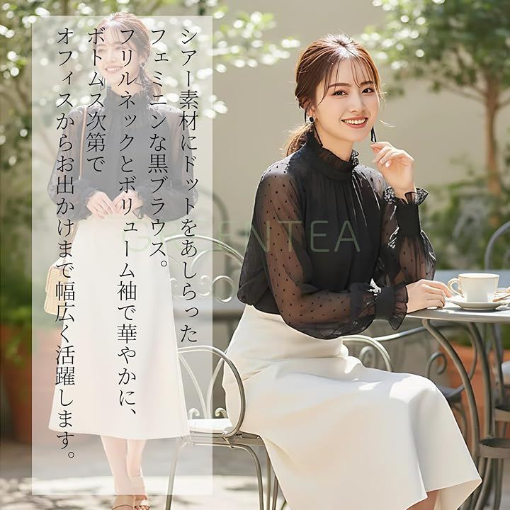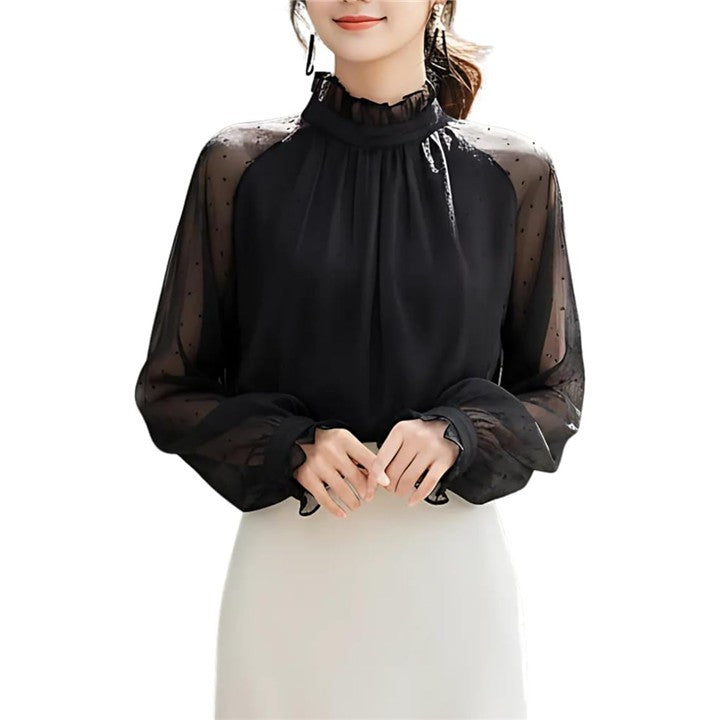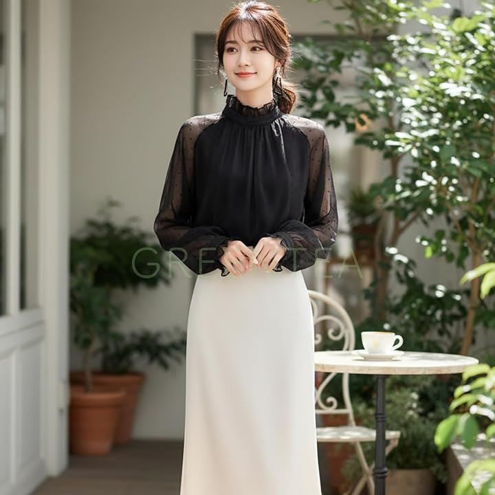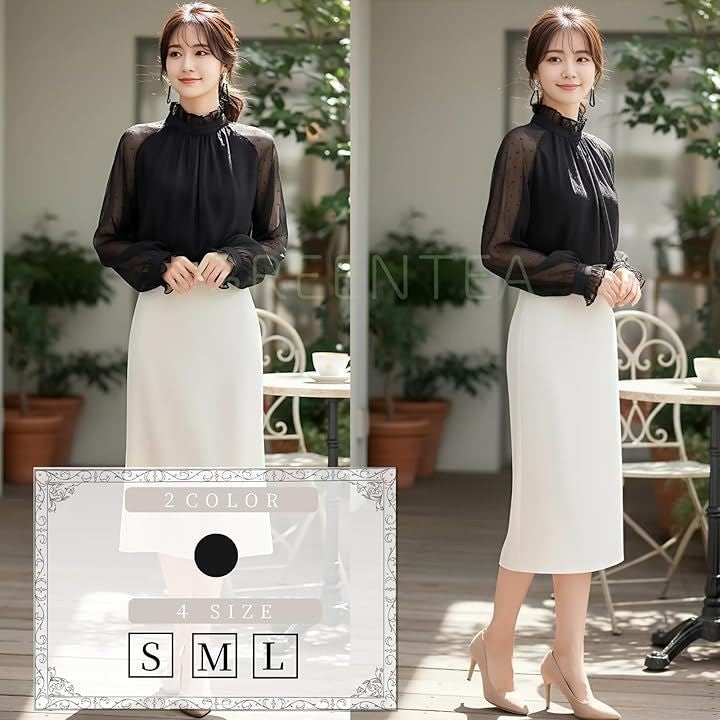 ブラウス シースルースリーブ 長袖 総レース きれいめ トップス 大きいサイズ レーストップスハイネック レディース