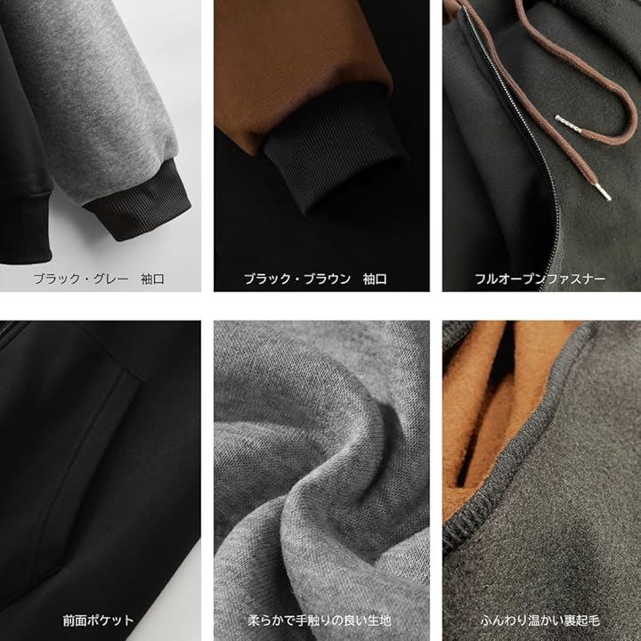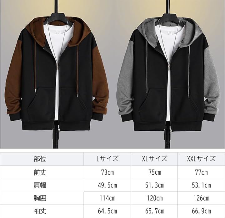 パーカー 裏起毛 メンズ ジップアップ 大きいサイズ フード付 トレーナー ツートン トップス 男性