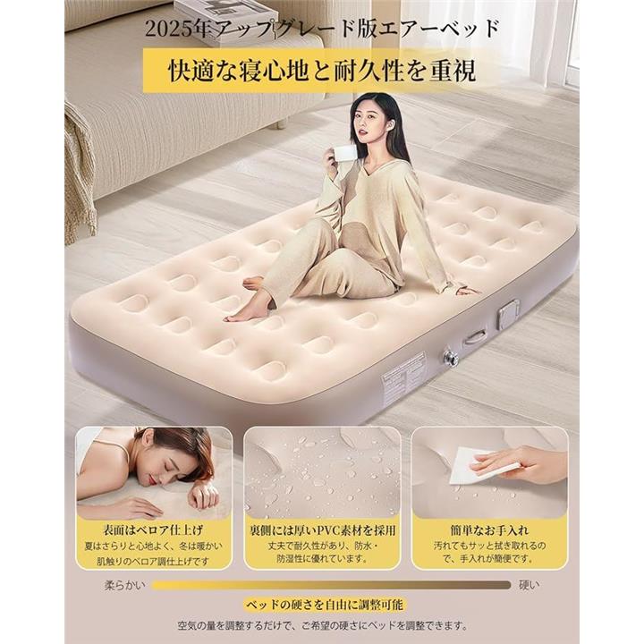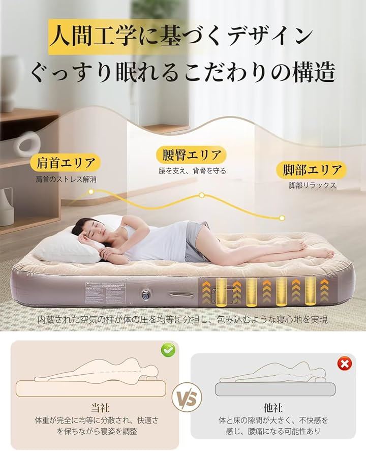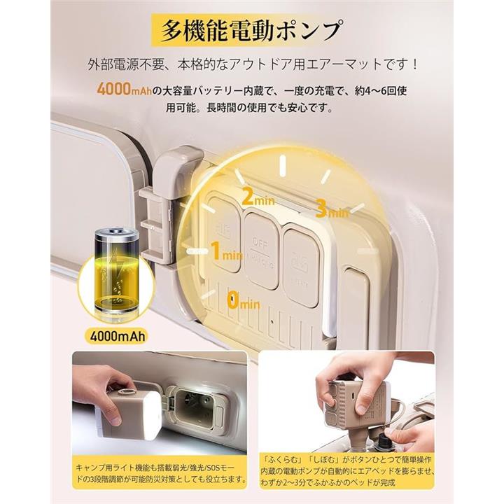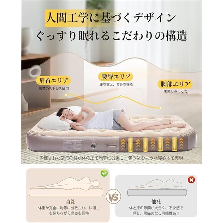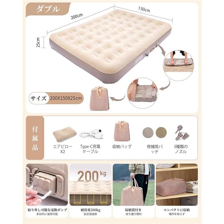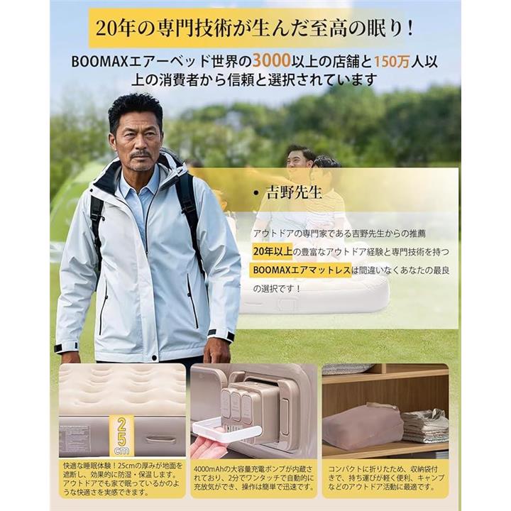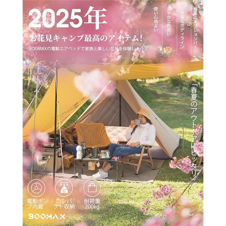 お花見に最適。BOOMAX エアーベッド 電動エアーマット 自動膨張 電動エアーポンプ内蔵 枕付き 耐荷重200kg エアーマットレス 空気ベッド 快適性 持ち運び便利 簡単収納 収納袋付き