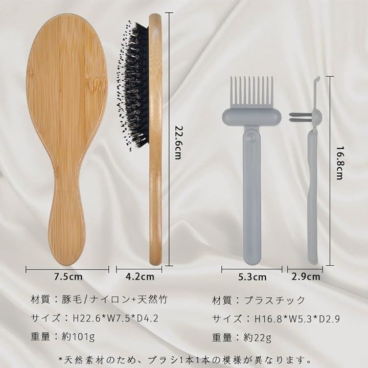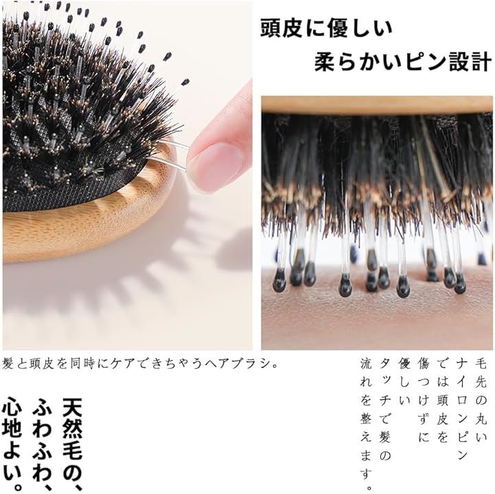 ヘアブラシ 豚毛 くし 竹製 ヘアブラシ天然豚毛 スカルプブラシ 頭皮マッサージ ヘッドマッサージ レディース メンズ こども 艶髪