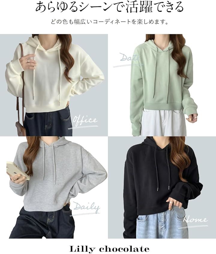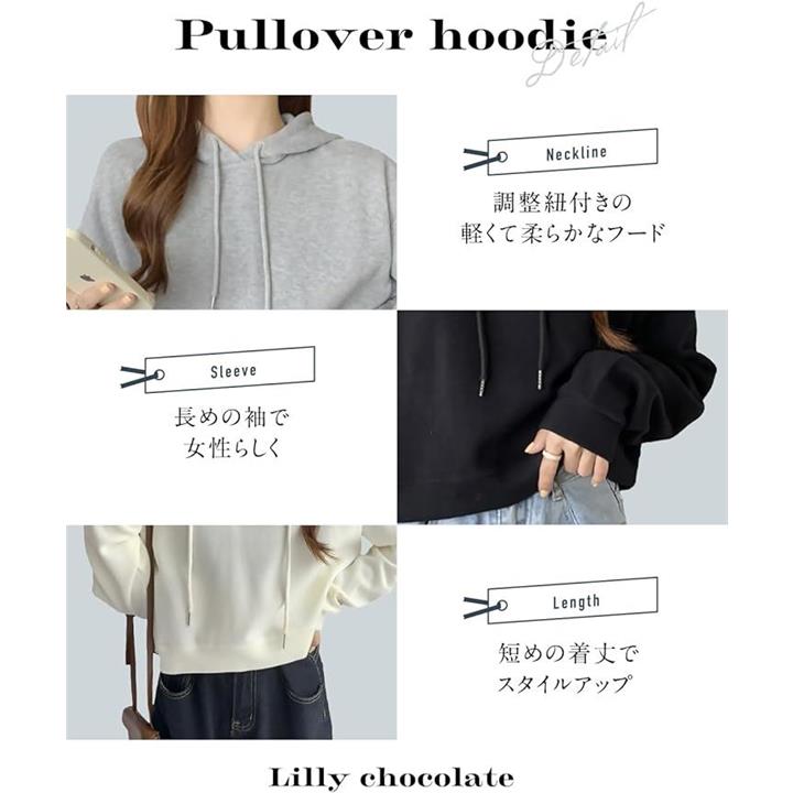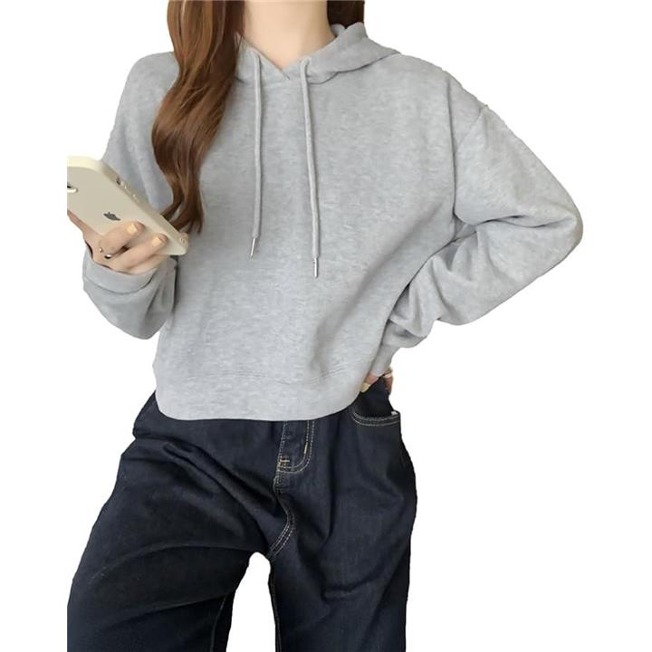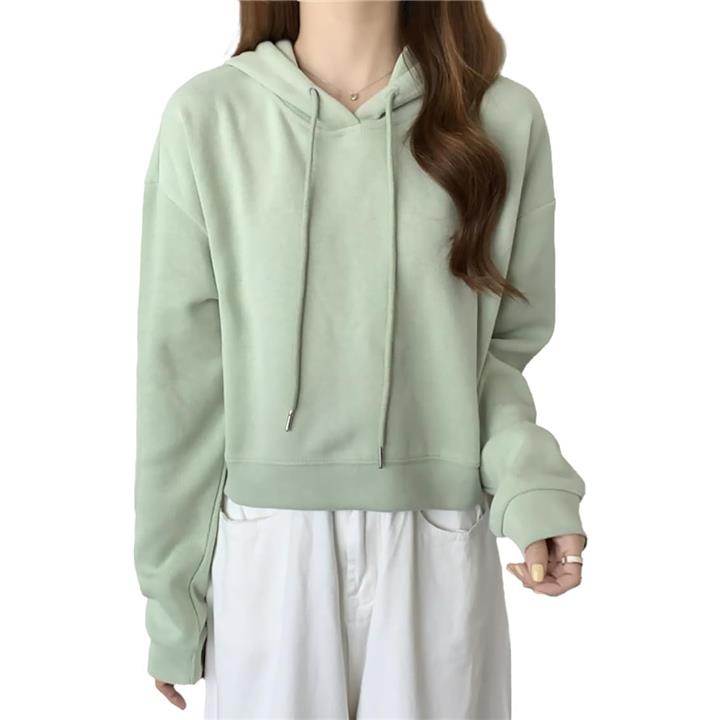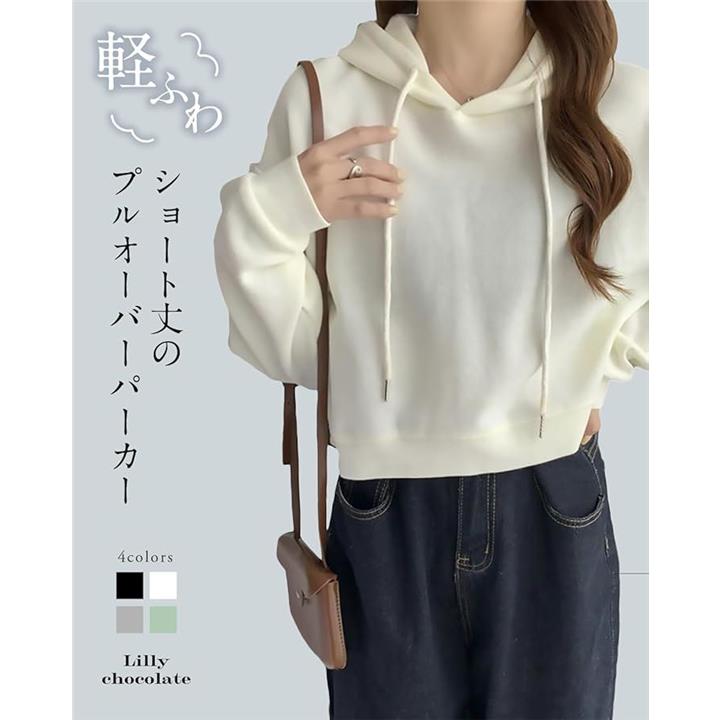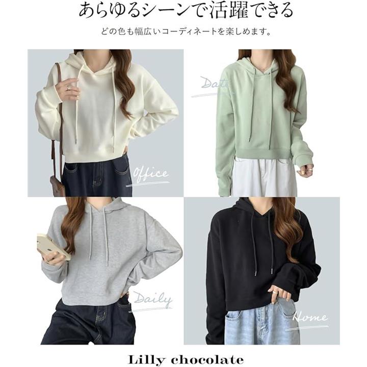 フーディー レディース 春 秋 ショート丈 パーカー ゆったり 長袖 プルオーバー 無地 カジュアル おしゃれ トップス