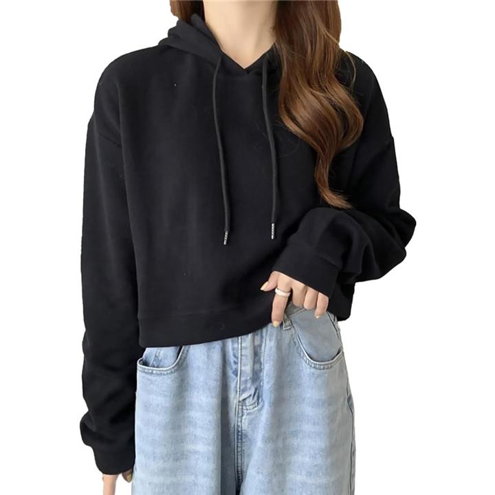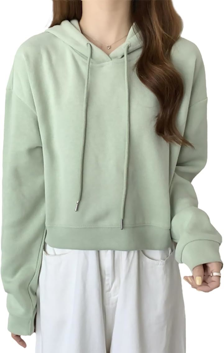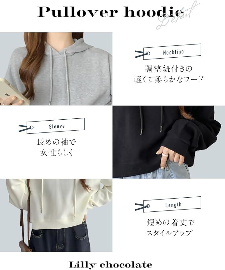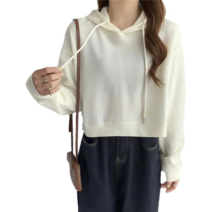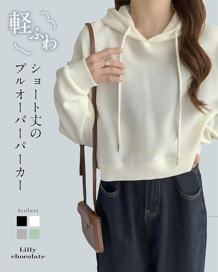 フーディー レディース 春 秋 ショート丈 パーカー ゆったり 長袖 プルオーバー 無地 カジュアル おしゃれ トップス