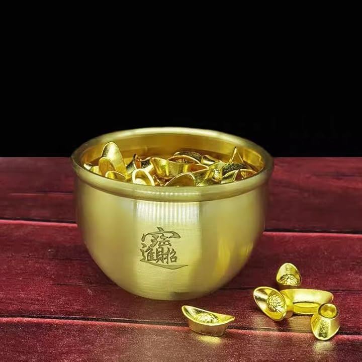 伝統的な純銅製聚宝盆 宝鉢 金運アップ 置物 装飾彫刻入り 風水グッズ