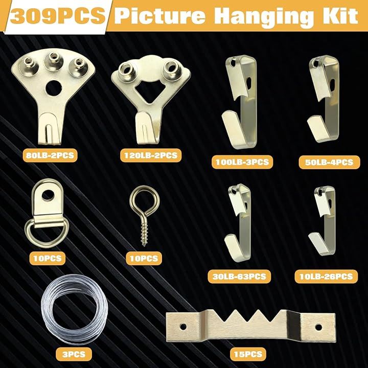 309個セット 壁掛け写真ハンガー 絵画 写真吊りキット ピクチャーハンギングキット 絵画用壁掛けフック 石膏ボード 絵画フック 多機能フック ネジフック 吊り下げ金具 額縁展示用吊り金具 吊り下げキット ネジ付き 釘付き