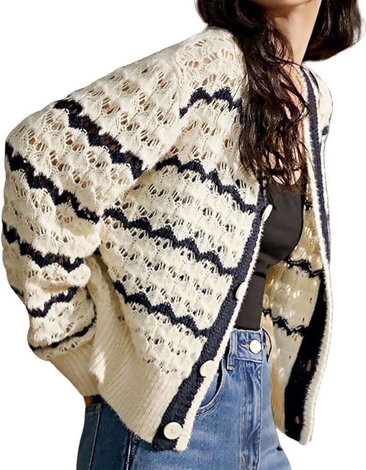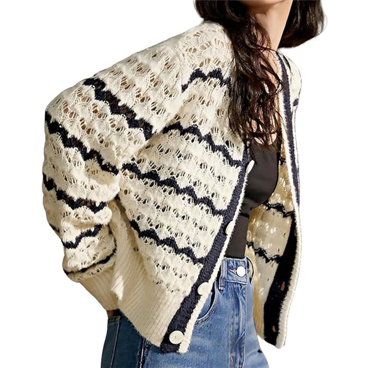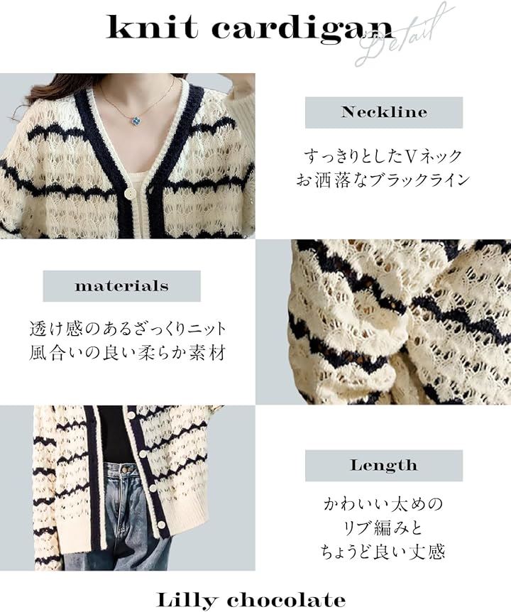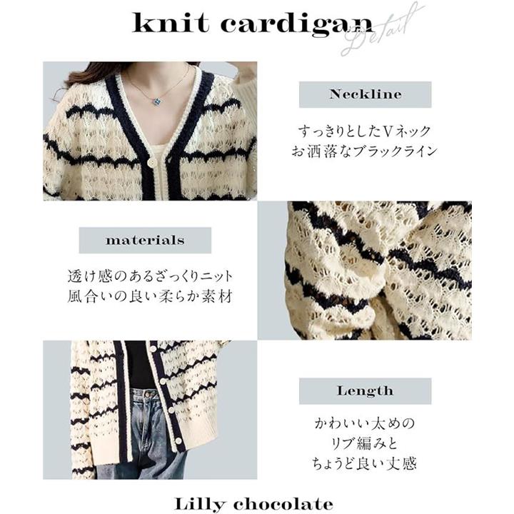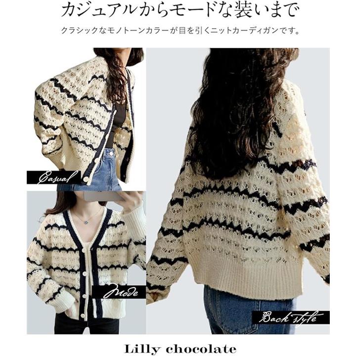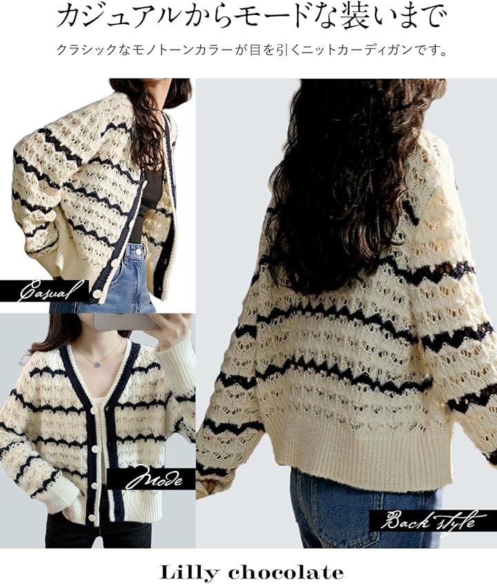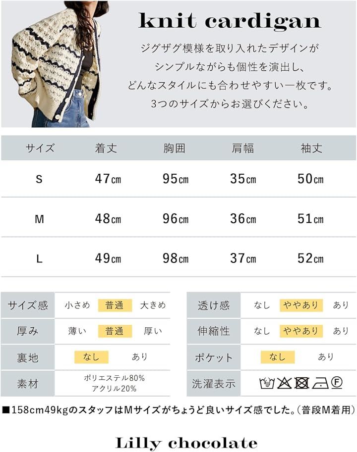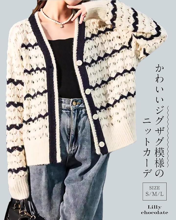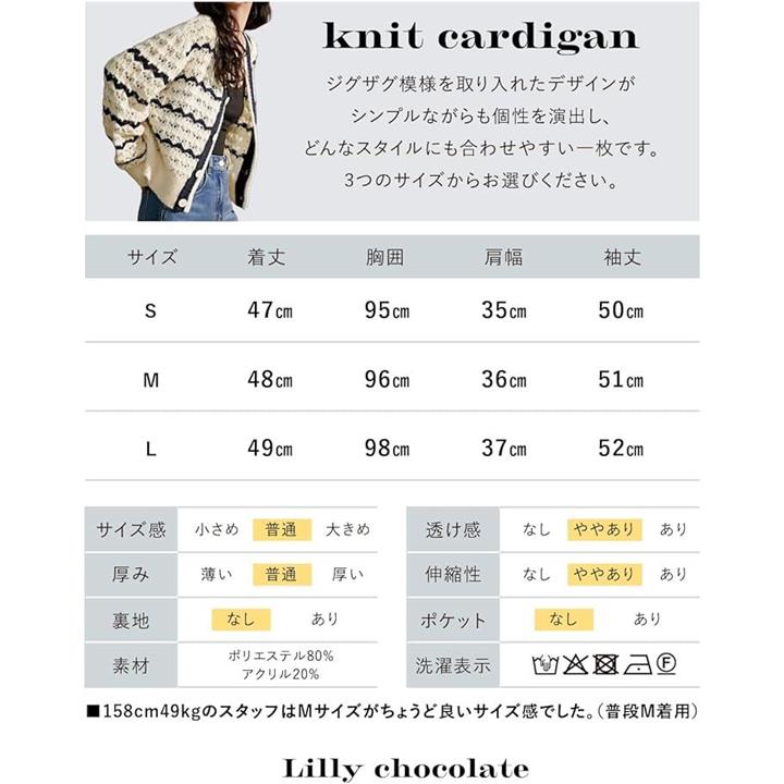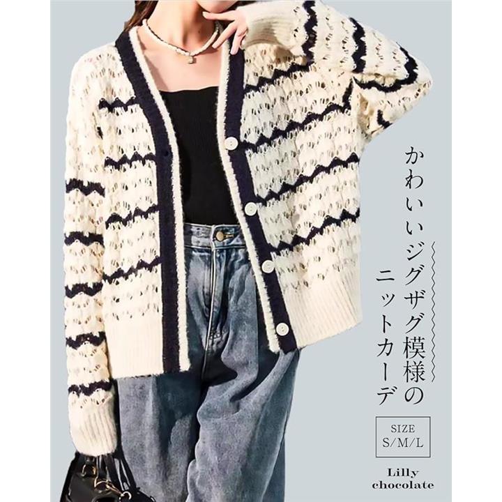 カーディガン レディース 春 ニット ジグザグ柄 モノトーン ブラック ホワイト 秋 冬 羽織り ショート丈 おしゃれ ゆったり 通勤 カジュアル