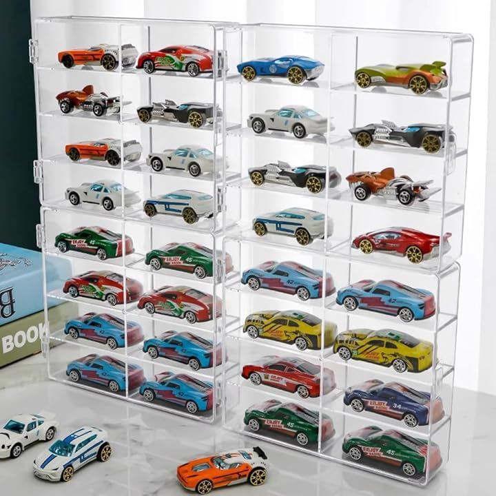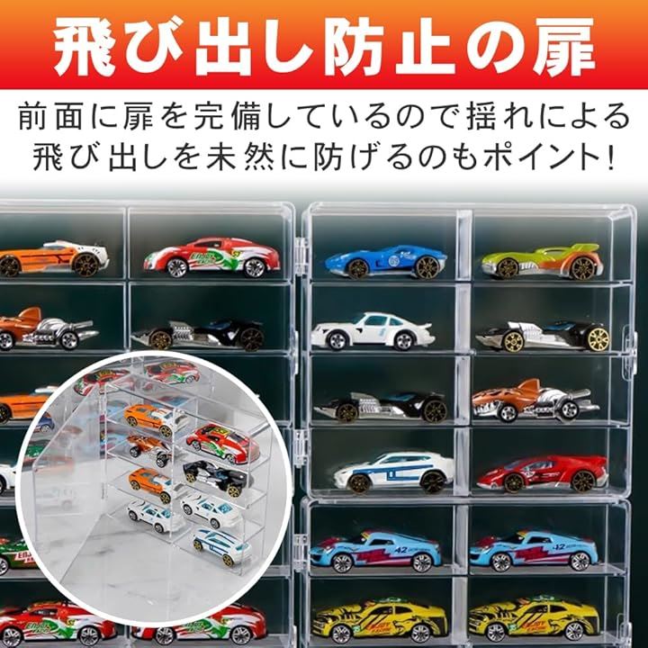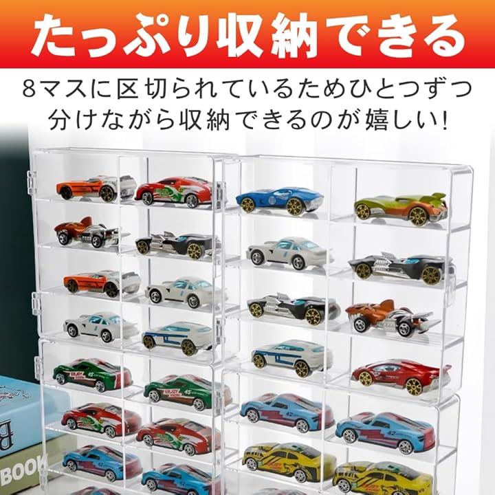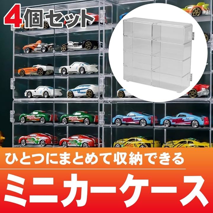 ミニカーコレクションケース 4個 小物収納 クリアカラー 積み重ね 汚れ防止 前扉付き